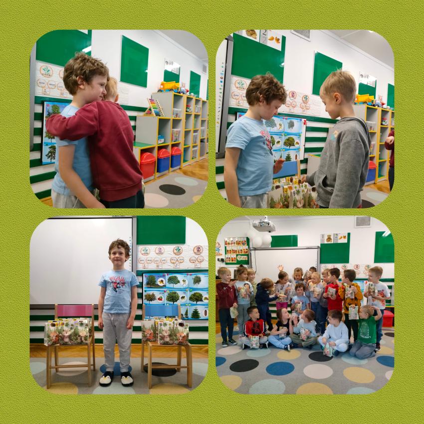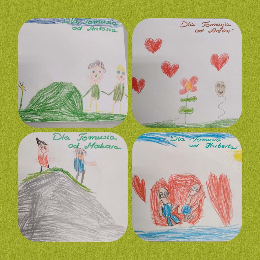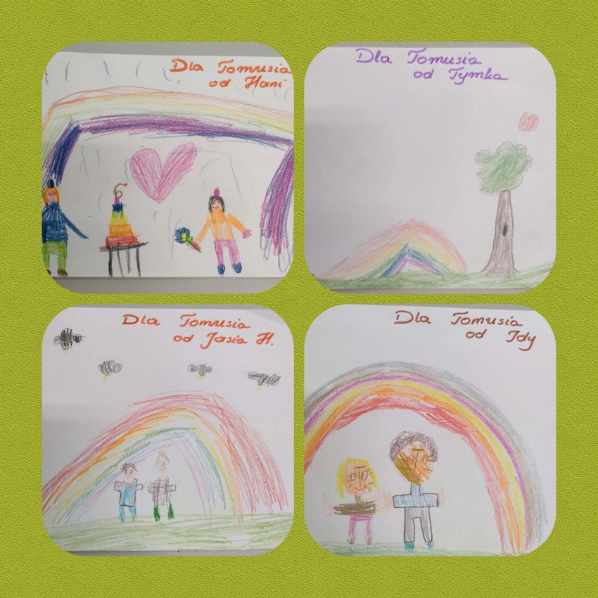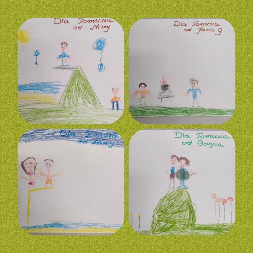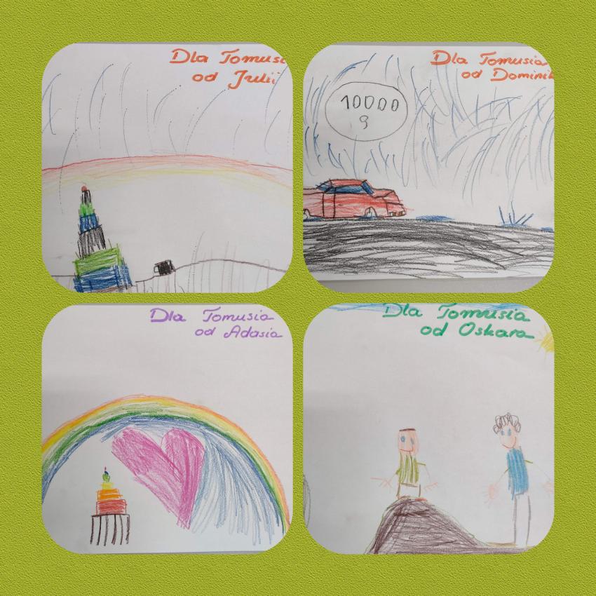 W dniu dzisiejszym Tomek świętował w przedszkolu swoje 6-te urodziny. Zaśpiewaliśmy głośne "Sto lat". Każde dziecko złożyło życzenia bardzo przejętemu koledze i obdarowalo Tomusia laurką . Także Tomuś wraz z rodzicami przygotował niespodzianki dla kolegów i koleżanek z grupy. Wszystkim było bardzo miło. Dziękujemy. A dla Tomusia specjalne życzenia: