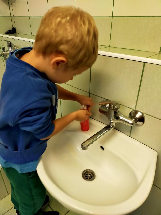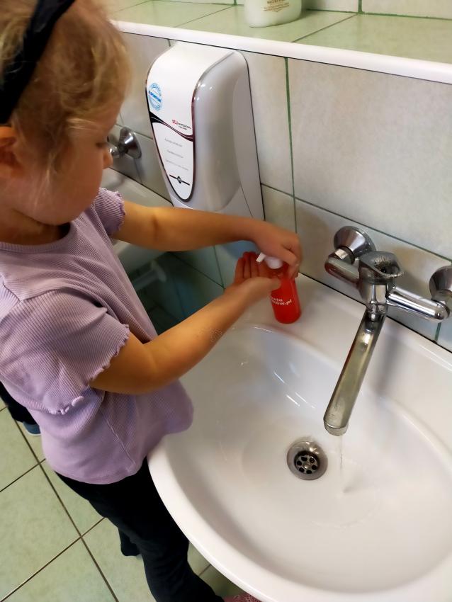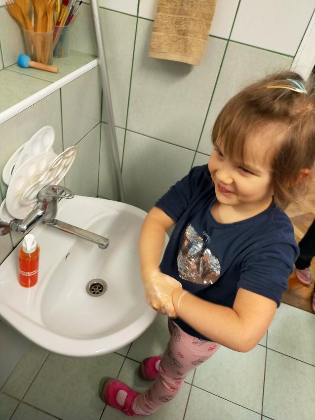Nasze Przedszkole wzięło udział w programie edukacyjnym Przedszkola Bez Owsików. W walce z owsikami najważniejsza są: profilaktyka i dbałość o prawidłową higienę. Z tego powodu został uruchomiony ogólnopolski program edukacyjny „PrzedszkolaBezOwsików.pl”. Celem programu jest kształtowanie odpowiednich nawyków w zakresie dbania o czystość rąk wśród dzieci. W ramach programu przedszkolaki z grupy Słoneczek wzięły udział w zajęciach edukacyjnych, które w ciekawy i zrozumiały sposób pokazały, jak ważne jest dbanie o czyste ręce w kontekście naszego zdrowia. Przedszkolaki obejrzały prezentację multimedialną, pokolorowały kolorowanki zatytułowane „ Kiedy należy myć ręce?” a następnie myły ręce zachowując techniki prawidłowego mycia.
