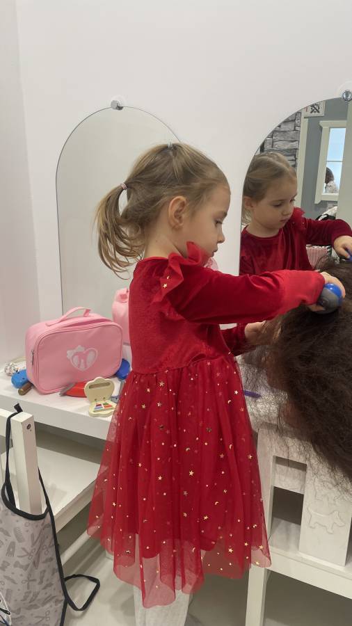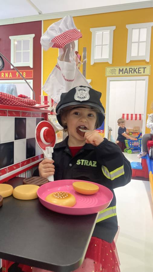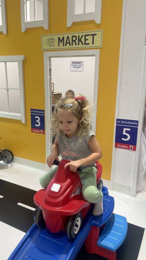W dniu 08.10.2025 grupa ,,Zajączki" odwiedziła Bawialnię Małe Miasto Wielka Wyobraźnia. Jest to miejsce, które przypomina kryte miasto wielkości dziecka, wyposażone w różnorodne zabawki i kostiumy, w taki sposób, by pobudzić radość z wyobraźni podczas zabawy i nauki. Dzieci mają okazję wcielić się tutaj w wiele ról społecznych. W Małym Mieście znajdziemy fryzjera, pocztę, gabinet lekarski, policję , straż pożarną a nawet warsztat samochodowy. Czas spędzony w Miasteczku pobudza wyobraźnię dzieci i sprawia, że każdy uczestnik zabawy czuje się szczęśliwy i uśmiechnięty.