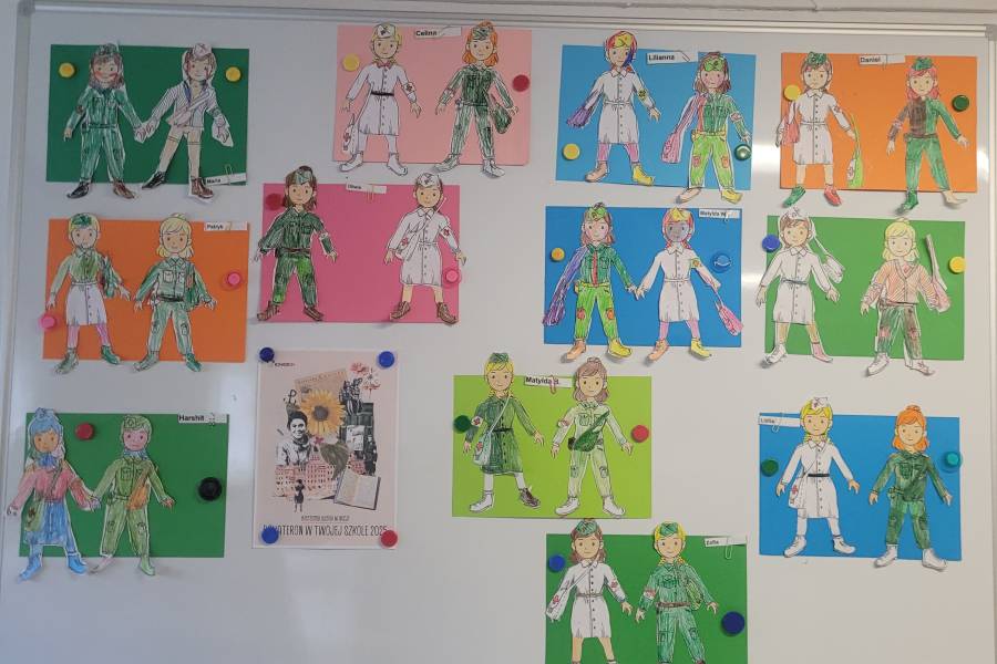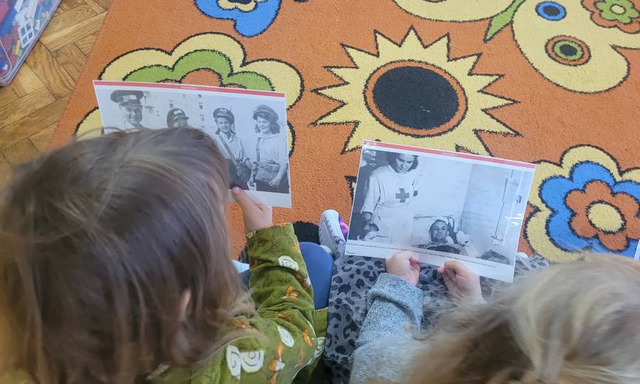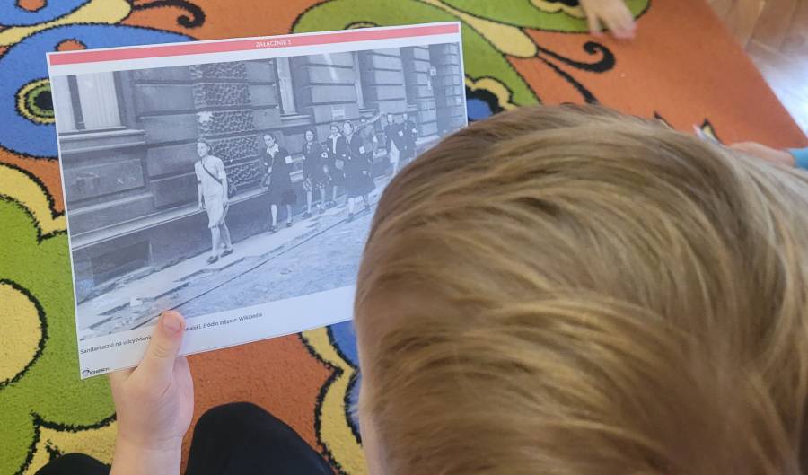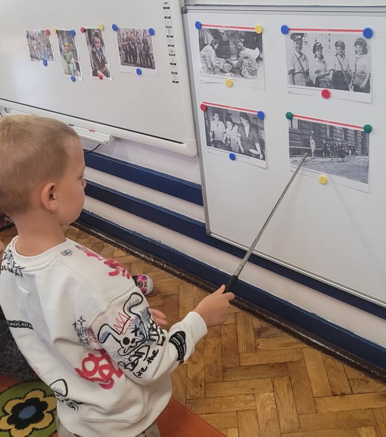 W październiku dzieci z grupy Motylki wzięły udział w ogólnopolskim projekcie edukacyjnym „BohaterON – włącz historię!”, którego celem jest upamiętnienie i uhonorowanie uczestników Powstania Warszawskiego oraz kształtowanie postaw patriotycznych już od najmłodszych lat. W tym roku szczególną uwagę poświęciliśmy roli kobiet w Powstaniu Warszawskim. Dzieci dowiedziały się, że sanitariuszki, łączniczki i opiekunki szpitali polowych były równie odważne i niezłomne jak walczący żołnierze. Podczas zajęć rozmawialiśmy o tym, kim jest bohater i dlaczego warto pamiętać o ludziach, którzy walczyli o wolność naszej ojczyzny. Podczas zajęć przedszkolaki wysłuchały opowieści o codziennym życiu w okupowanej Warszawie oraz o tym, dlaczego pamięć o bohaterach jest tak ważna. Aby w przystępny sposób przybliżyć dzieciom wydarzenia sprzed 81 lat, oglądały zdjęcia i krótką prezentację multimedialną, dowiedziały się, że najmłodsza sanitariuszka Różyczka miała zaledwie 8 lat. Dzięki zabawom dramowym dzieci mogły wcielić się w role sanitariuszek, łączników czy żołnierzy, co pozwoliło im jeszcze lepiej zrozumieć odważne działania powstańców i przeżyć opowiadaną historię w sposób bardziej bezpośredni i emocjonalny. W części plastycznej przedszkolaki kolorowały ubiory sanitariuszek i łączniczek wg informacji, które zdobyły na zajęciach. Dzięki udziałowi w akcji dzieci miały okazję w prosty i dostosowany do ich wieku sposób poznać fragment trudnej historii Polski, zrozumieć szczególną rolę kobiet w Powstaniu Warszawskim oraz uczyć się szacunku dla bohaterów narodowych.
