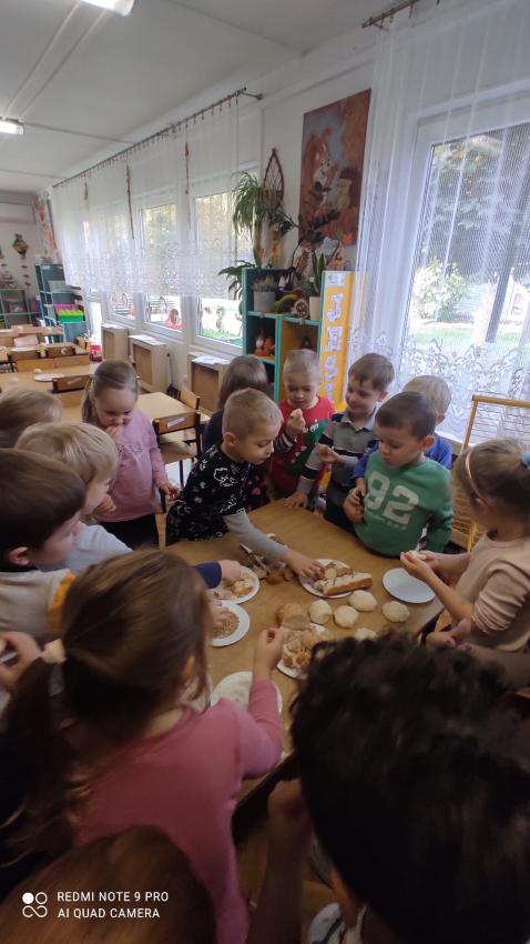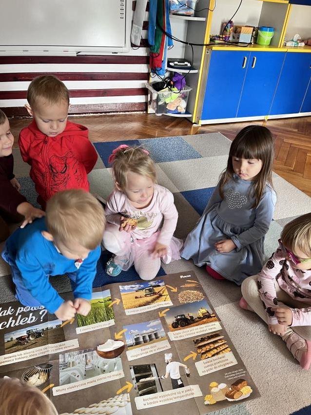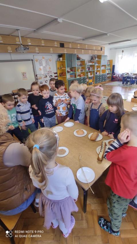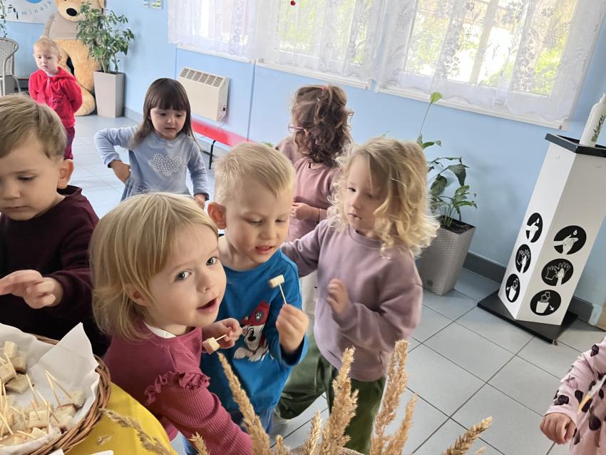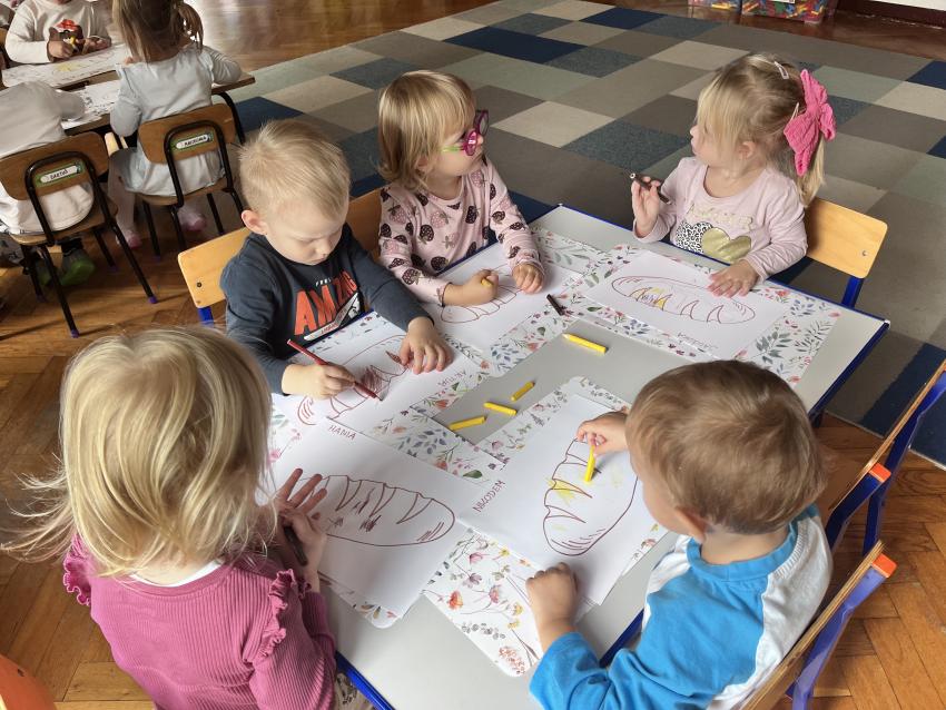 16 października w naszym przedszkolu obchodziliśmy Dzień Chleba. Podczas zajęć dzieci dowiedziały się: jak powstaje chleb, jakie składniki potrzebne są do wypieku chleba oraz jakie czynności wykonują; rolnik, młynarz i piekarz. Przedszkolaki poznały etapy produkcji chleba na podstawie historyjki obrazkowej "Od ziarenka do bochenka" oraz filmu edukacyjnego pt. "Jak powstaje chleb". Porównywały proces produkcji chleba dawniej i dziś. Dzieci tworzyły prace plastyczne związane z tematem. Dzień Chleba to Międzynarodowe Święto ustanowione przez Międzynarodowy Związek Piekarzy i Cukierników. Chleb jest nie tylko podstawowym składnikiem diety, ale także ważnym symbolem kulturowym: gościnności i tradycji.