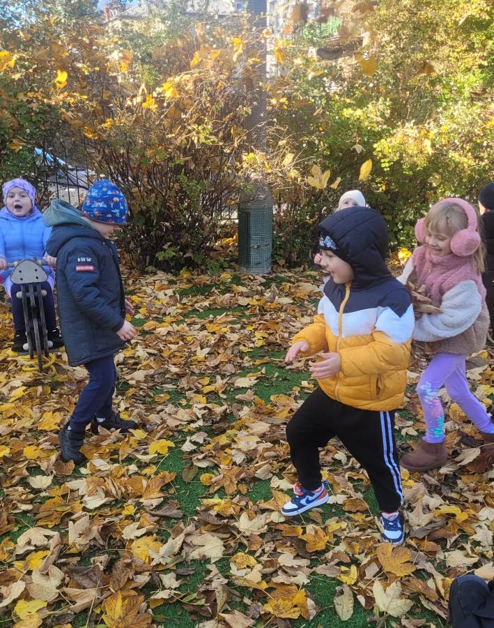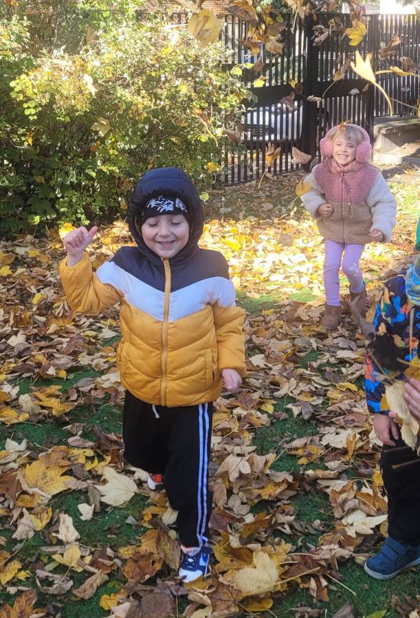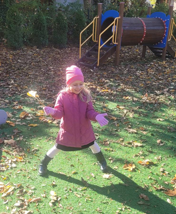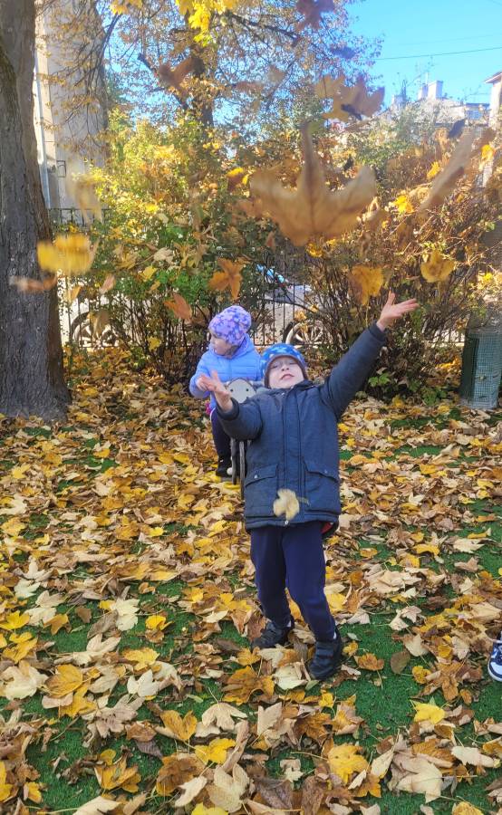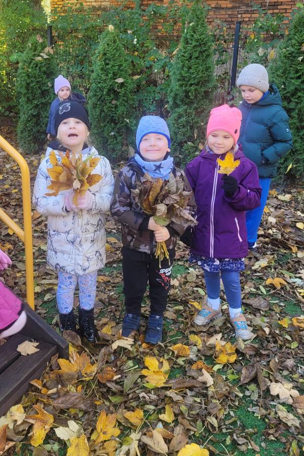 Nie zabrakło również spacerów przyrodniczych, podczas których dzieci obserwowały zmiany zachodzące w przyrodzie: kolorowe liście, spadające owoce i przygotowujące się do zimy rośliny. Te spacery były doskonałą okazją do nauki przez obserwację i rozmów o otaczającym świecie.