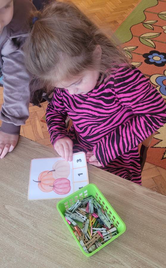 Październik w naszej grupie upłynął pod znakiem kolorowej jesieni i wesołych zabaw edukacyjnych! Dzieci poznawały nazwy warzyw i owoców, odkrywały skarby jesieni oraz rozwijały swoje umiejętności logiczne i rytmiczne.