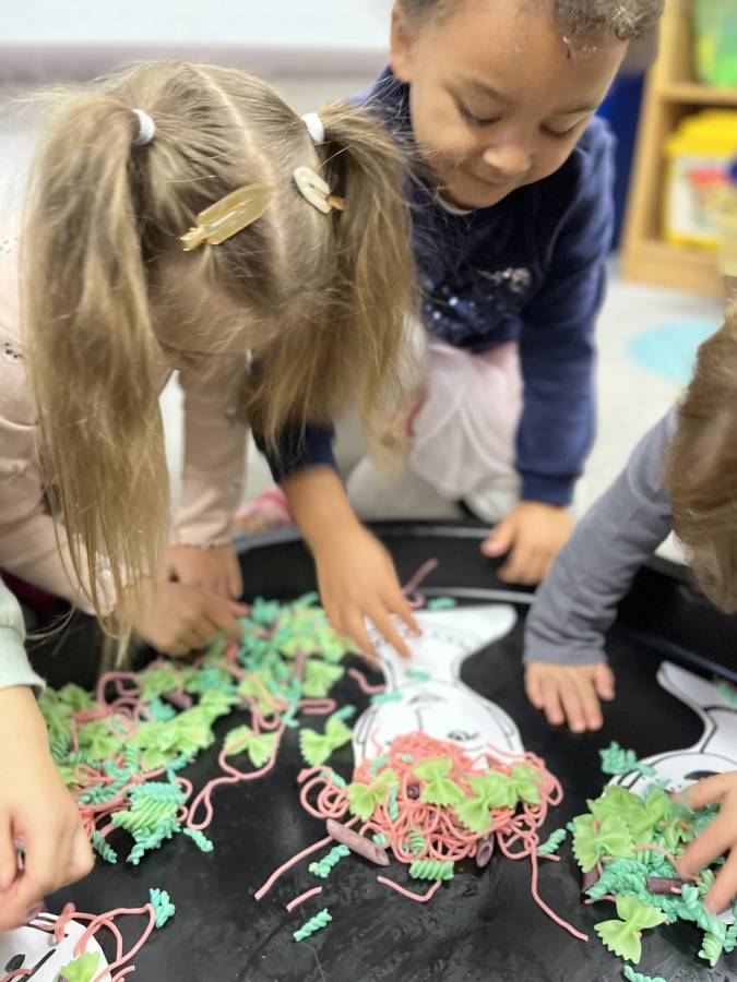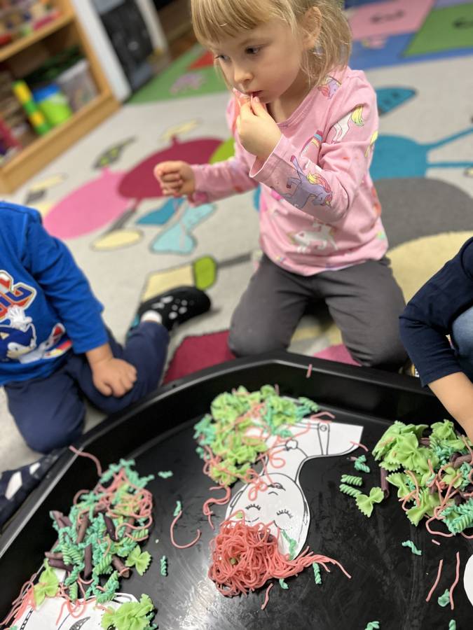 W miniony piątek w naszym przedszkolu odbył się Dzień Makaronu. To wyjątkowe wydarzenie, dostarczyło dzieciom mnóstwa radości i niezapomnianych wrażeń. Tego dnia dzieci z grupy "Skrzaty" miały niepowtarzalną okazję bawić się w sensorycznego fryzjera. Podczas zabawy dzieci wcieliły się w rolę fryzjerów, wykorzystując różnorodne rodzaje makaronów do tworzenia "fryzur". Na tacy różnorakich aktywności dzieci miały rozłożony makaron o różnych kształtach, kolorach, strukturach i wielkościach. Każdy rodzaj makaronu dostarczył dzieciom innych wrażeń dotykowych, wzrokowych i wizualnych. Zabawa w sensorycznego fryzjera okazała się doskonałych narzędziem do rozwijania umiejętności manualnych i sensorycznych.