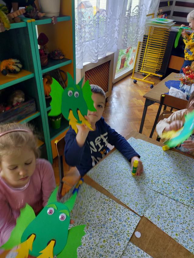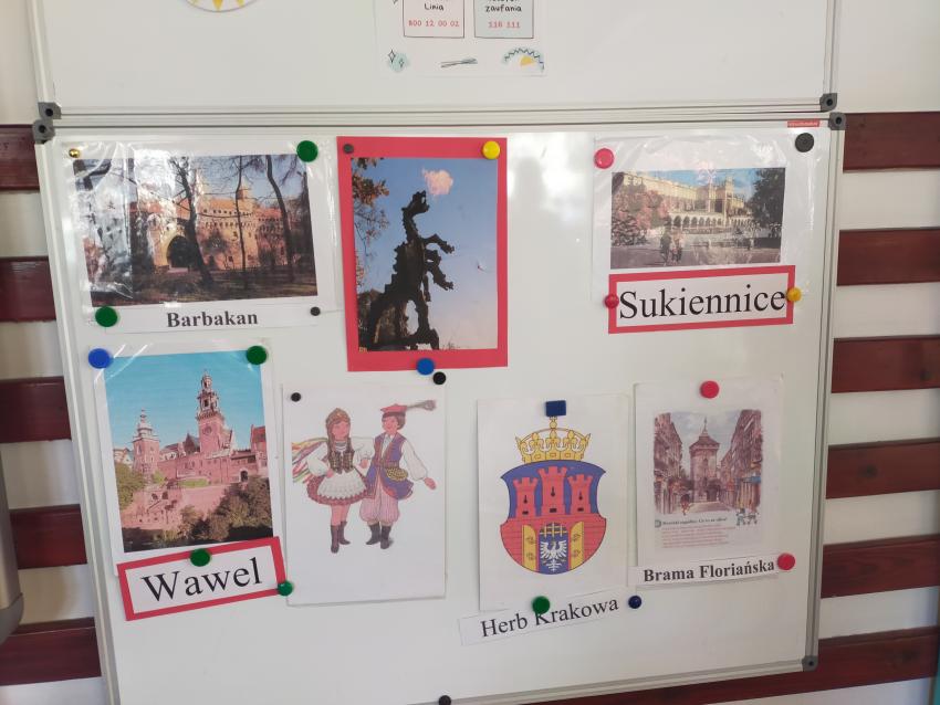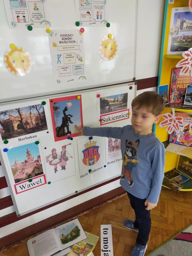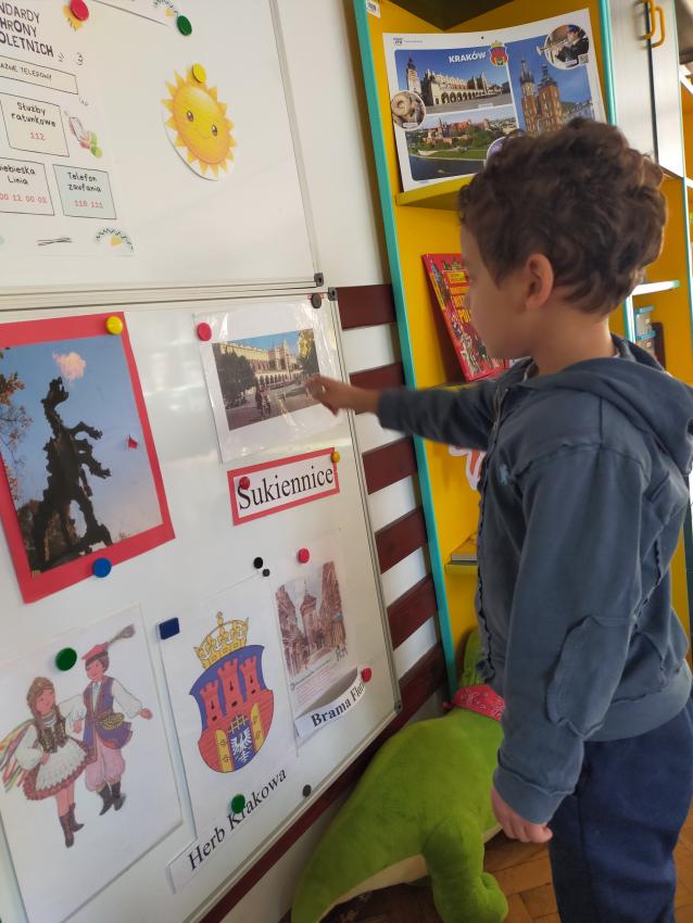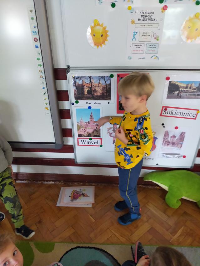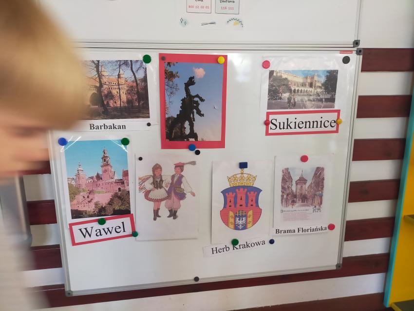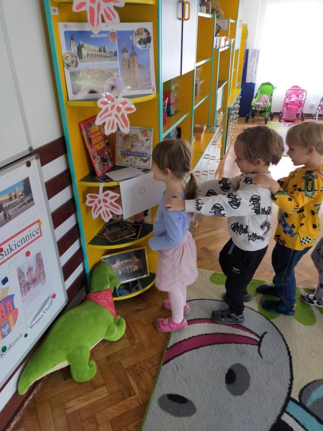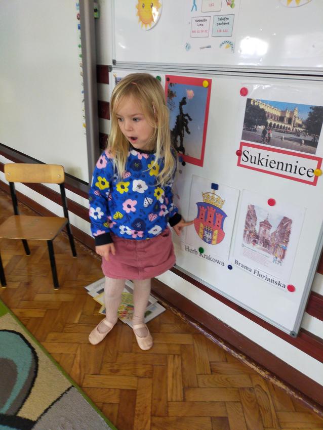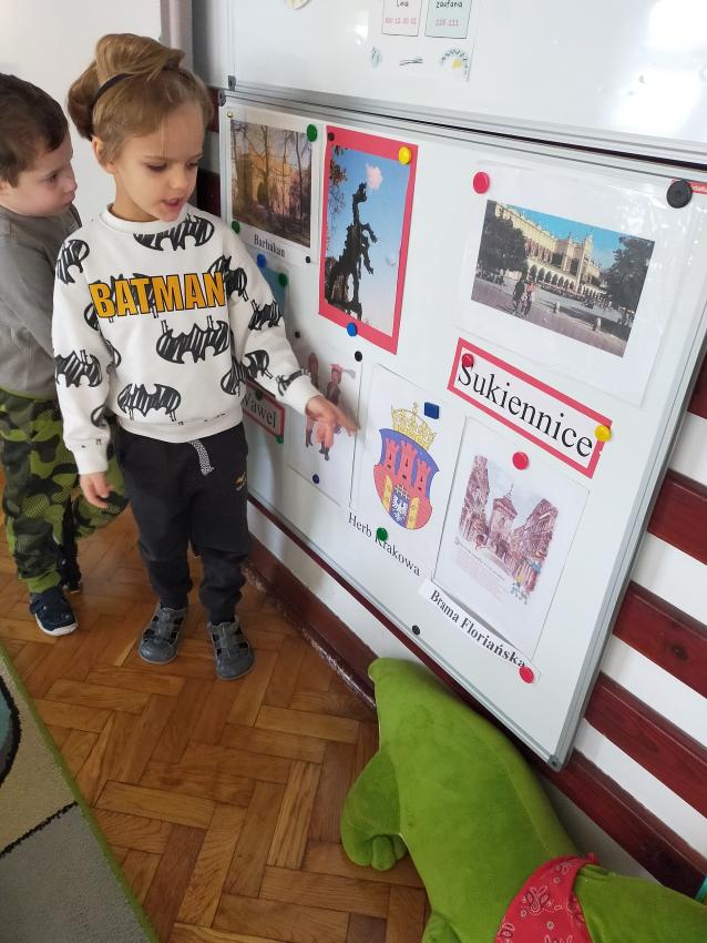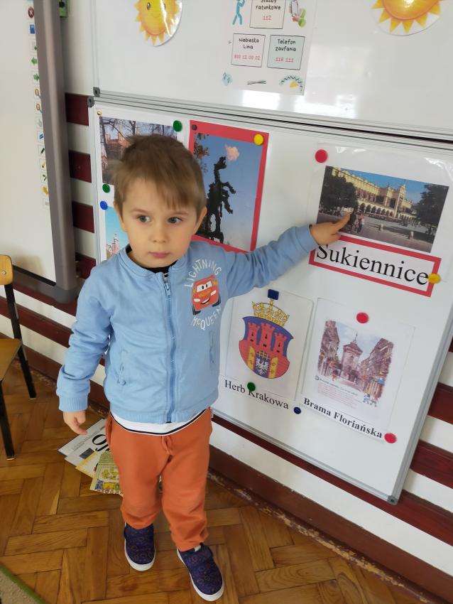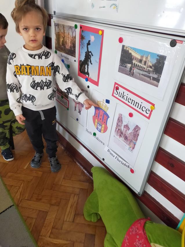 W minionym tygodniu dzieci z grupy Słoneczek realizowały temat ,,Poznajemy nasze miasto Kraków”. Przedszkolaki poznały znane i mniej znane legendy krakowskie. Wysłuchały opowieści „O hejnale z wieży mariackiej” oraz "Legendy o smoku wawelskim". Najpierw jednak przypomniano dzieciom o tym, że Kraków był kiedyś stolicą Polski. Były oczywiście też rozmowy o smoku wawelskim, który mieszkał w grocie pod Wawelem. Przy okazji słuchania legendy „O hejnale z wieży mariackiej” dzieci wysłuchały również hejnału. Oglądały przy tym zdjęcia Krakowa i jego zabytkach. Największym zainteresowaniem cieszyły się ilustracje smoka wawelskiego. Następnie wysłuchały piosenki "Krakowiaczek", układały puzzle dzieci w strojach krakowskich, uczyły się tańca. A w ostatnim dniu wykonały pracę plastyczną -Smok Wawelski. Celem zajęć było rozbudzenie w dzieciach poczucia więzi i zainteresowania ich własnym miastem rodzinnym.