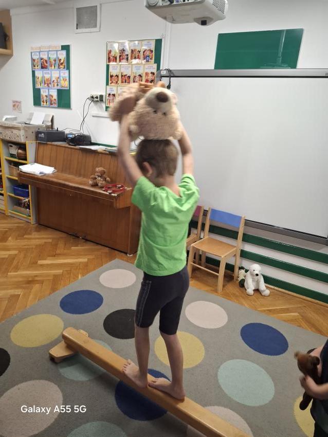 Podczas zajęć dzieci dowiedziały się, dlaczego obchodzimy Dzień Pluszowego Misia. Poznały historię powstania pierwszego misia – od opowieści o prezydencie Theodore’u Roosevelcie, który podczas polowania wypuścił małego niedźwiadka, aż po stworzenie pierwszej pluszowej zabawki nazwanej „Teddy Bear”. Przedszkolaki z zainteresowaniem wysłuchały tej historii i chętnie odpowiadały na pytania.