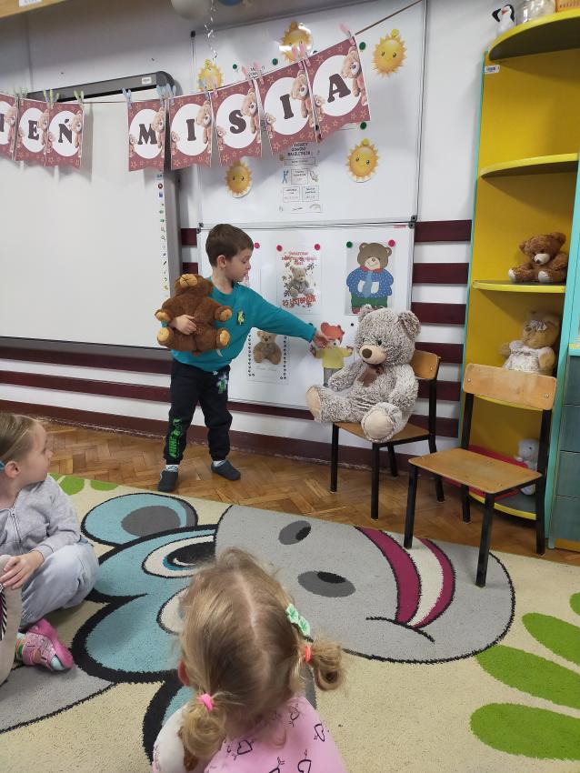 W ciągu dnia dzieci brały udział w wielu misiowych aktywnościach: prezentowały swoje pluszaki, rozwiązywały zagadki o znanych misiach z bajek, tańczyły z misiami oraz wykonywały prace plastyczne – tworząc własne „misiowe portrety”. Każda grupa zrobiła wspólne zdjęcia z dużym przedszkolnym misiem.