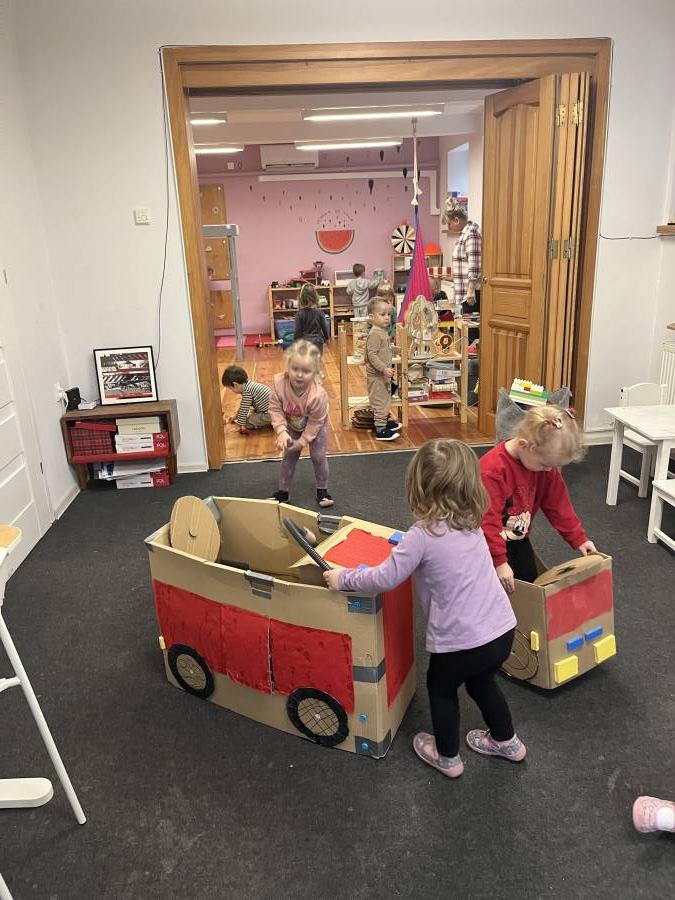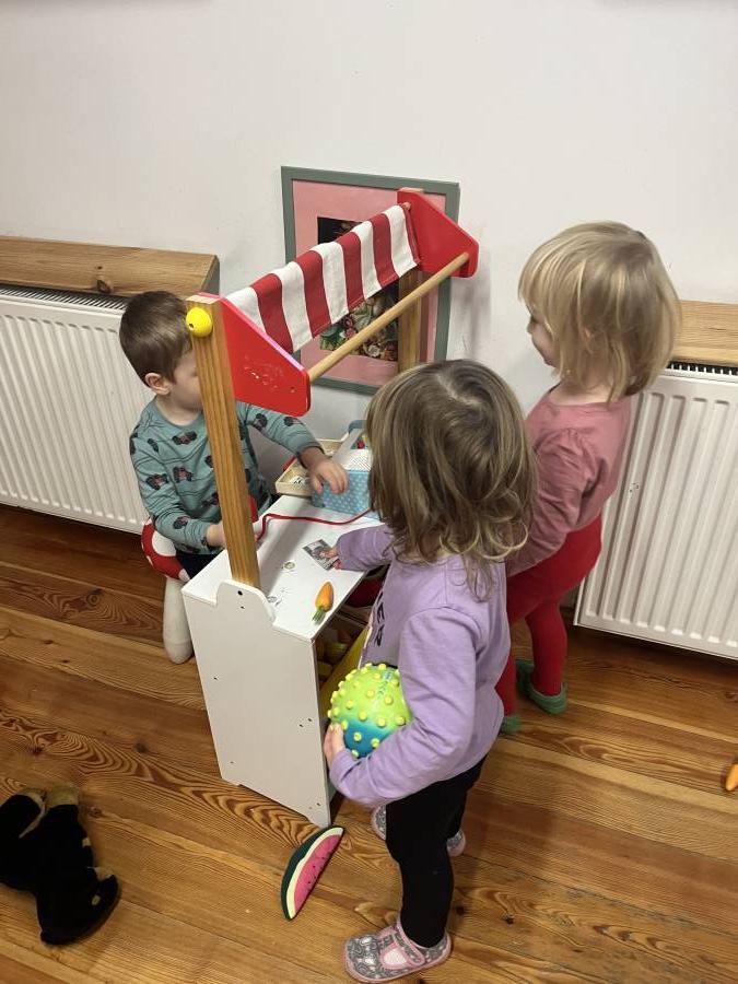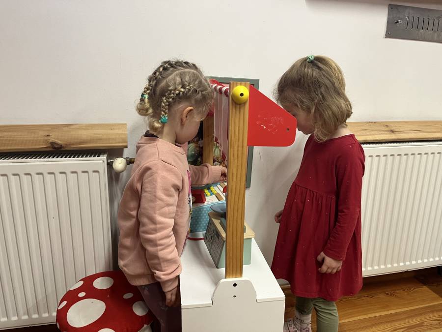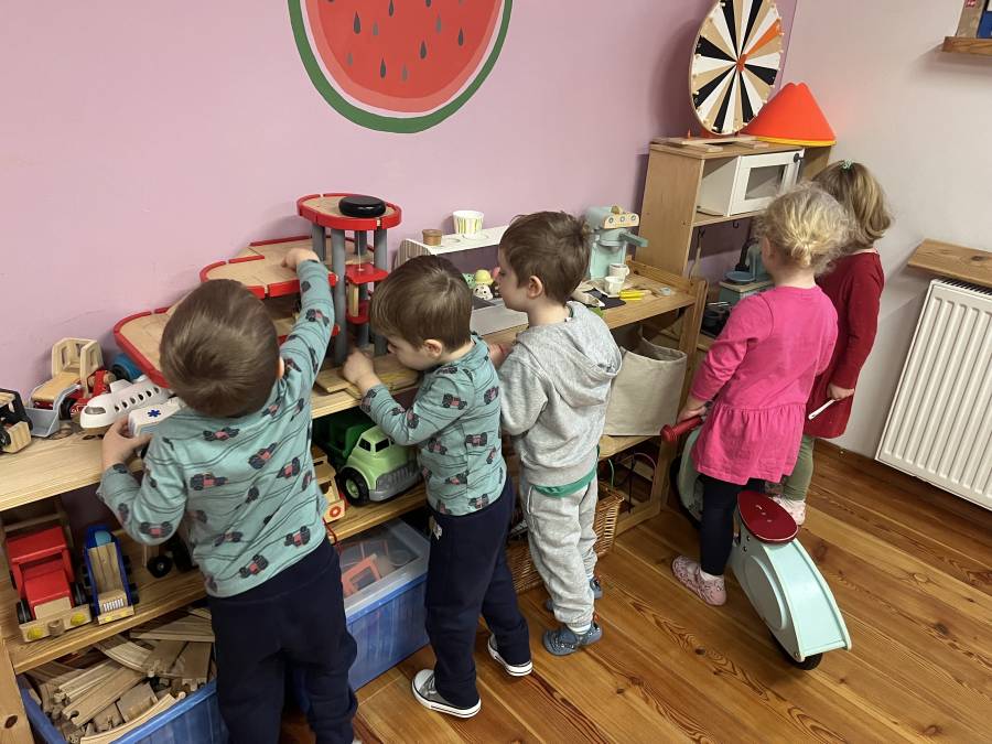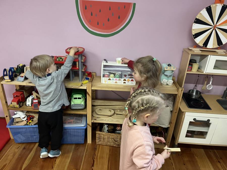 Na miejscu przedszkolaki korzystały z różnorodnych atrakcji dostępnych w bawialni: konstrukcji wspinaczkowych oraz kącików tematycznych. Dzieci chętnie uczestniczyły w swobodnej zabawie, współpracowały ze sobą i doskonaliły umiejętność dzielenia się przestrzenią oraz zabawkami.