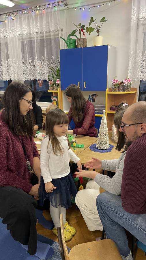 W dniu 11.12.2025 w grupie ,,Zajączki " odbyły się świąteczne warsztaty z Rodzicami. Nasze przedszkolaki zaprezentowały swoim bliskim krótki występ artystyczny, podczas którego zaśpiewały i zatańczyły wesołe świąteczne piosenki oraz złożyły Rodzicom serdeczne życzenia.