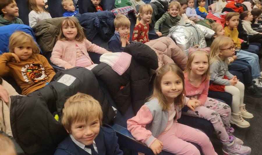 12 grudnia nasze przedszkolaki z grup Skrzaty, Słoneczka, Smoki i Motylki udały się na wyjątkową świąteczną przygodę do teatru Kultureska. Dzieci obejrzały kolorowe i pełne humoru przedstawienie „Elfy Trzy”, które wprowadziło wszystkich w magiczny, bożonarodzeniowy nastrój. Przedszkolaki z przejęciem śledziły losy sympatycznych elfów, reagowały na zabawne sceny i chętnie brały udział w interaktywnych fragmentach spektaklu. Dzieci były zachwycone barwną scenografią, kostiumami oraz świąteczną muzyką. Wyjazd okazał się wspaniałą okazją do rozwijania wrażliwości artystycznej, budowania pozytywnych emocji oraz wspólnego przeżywania świątecznej atmosfery. Dzieci wróciły do przedszkola uśmiechnięte i pełne pięknych wspomnień.