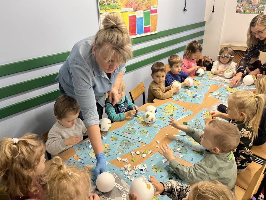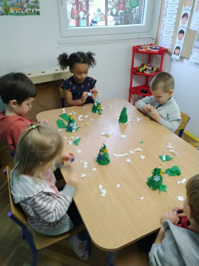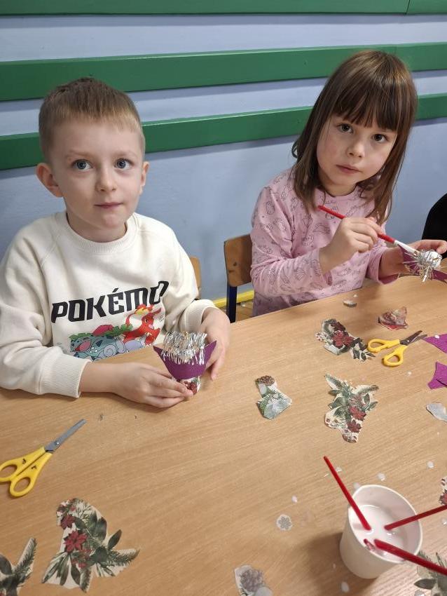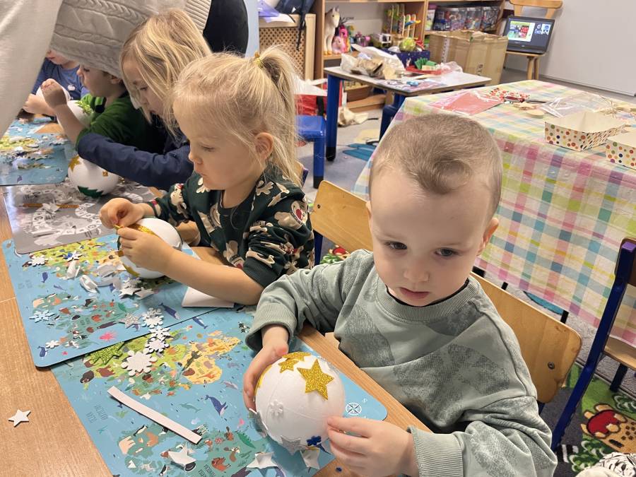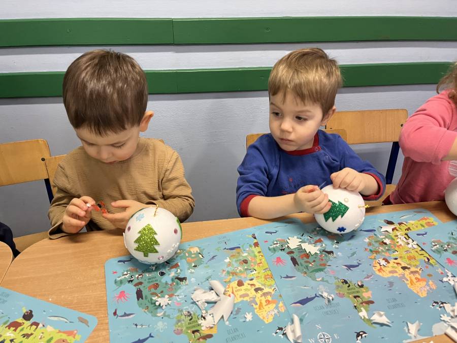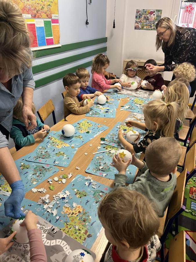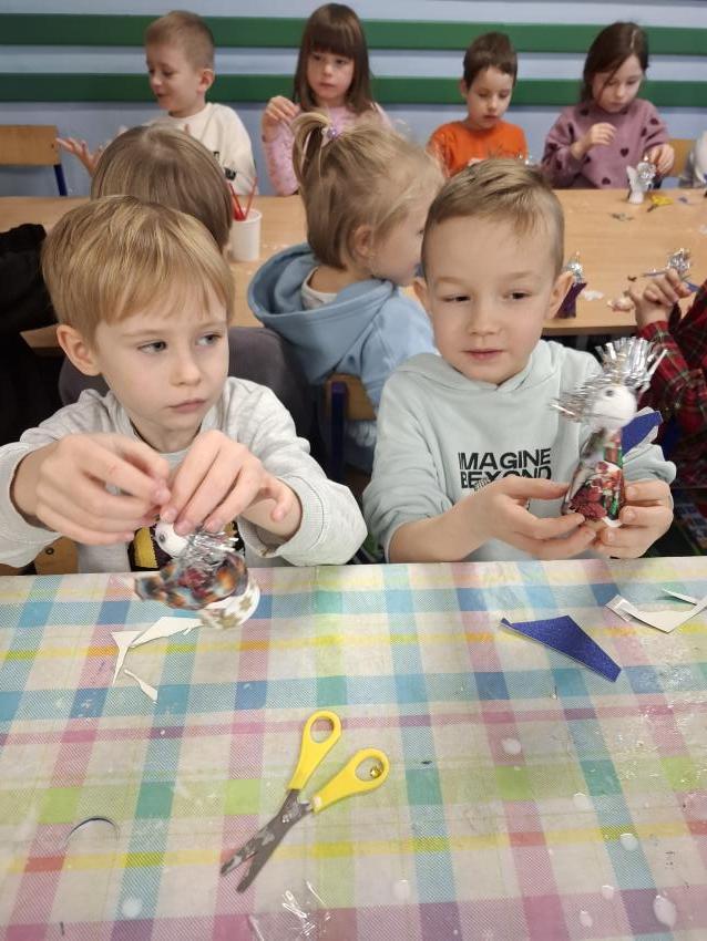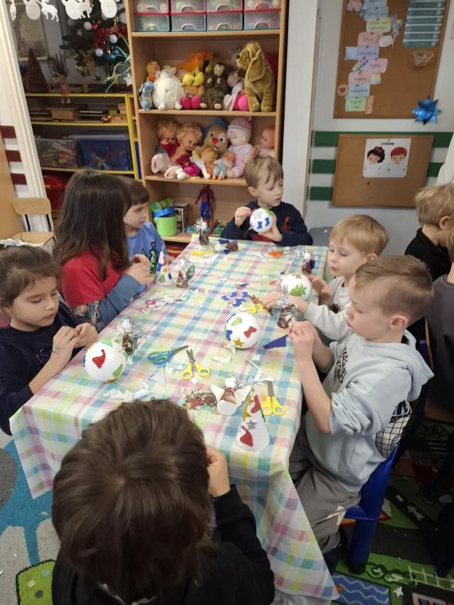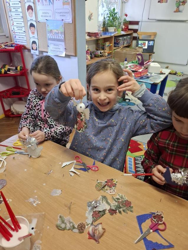 W okresie przedświątecznym w naszym przedszkolu odbyły się warsztaty plastyczne z okazji Świąt Bożego Narodzenia. W zajęciach kolejno  uczestniczyły wszystkie grupy przedszkolne. Dzieci z ogromnym zaangażowaniem i radością wykonywały własnoręcznie ozdoby świąteczne, wykorzystując różnorodne materiały plastyczne. Powstały piękne bombki, łańcuchy, choinki oraz inne dekoracje, które wprowadziły do przedszkola wyjątkową, świąteczną atmosferę. Warsztaty były doskonałą okazją do rozwijania kreatywności, zdolności manualnych oraz współpracy w grupie, a także do kultywowania tradycji bożonarodzeniowych.