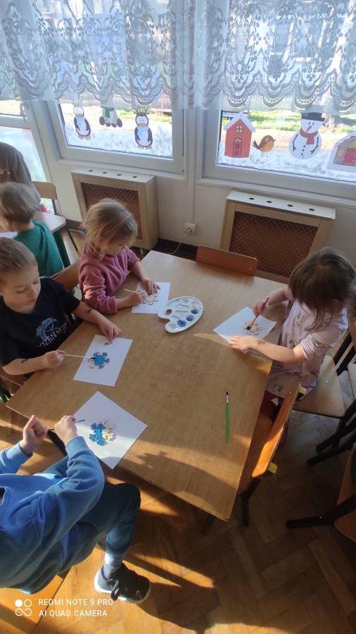 Przedszkolaki z zaangażowaniem przygotowywały kartki bożonarodzeniowe oraz różnorodne dekoracje-barwne bombki, papierowe łańcuchy i subtelne śnieżynki. Wykonały także zimową pracę plastyczną, podczas której rozwijały kreatywność, wyobraźnię oraz zdolności manualne.