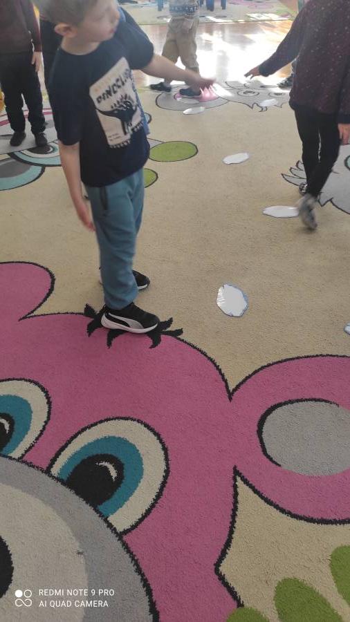 Następnie dzieci naśladowały charakterystyczny sposób poruszania się pingwinów, kołysząc się na boki i stawiając ostrożne kroki.