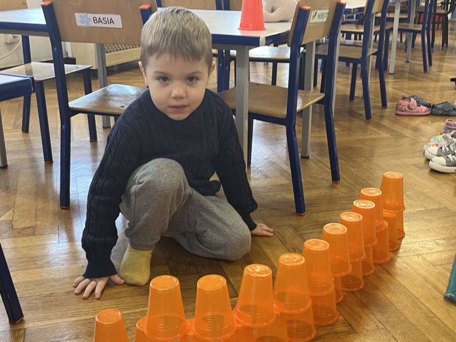 Zajęcia dostarczyły dzieciom wiele radości i były doskonałą okazją do nauki poprzez ruch i wspólne działanie. Maluszki z dużym zaangażowaniem uczestniczyły w zadaniach, ćwicząc koncentrację, współpracę oraz umiejętność słuchania i wykonywania instrukcji. Było to wartościowe i pełne uśmiechu spotkanie z pierwszymi krokami kodowania.