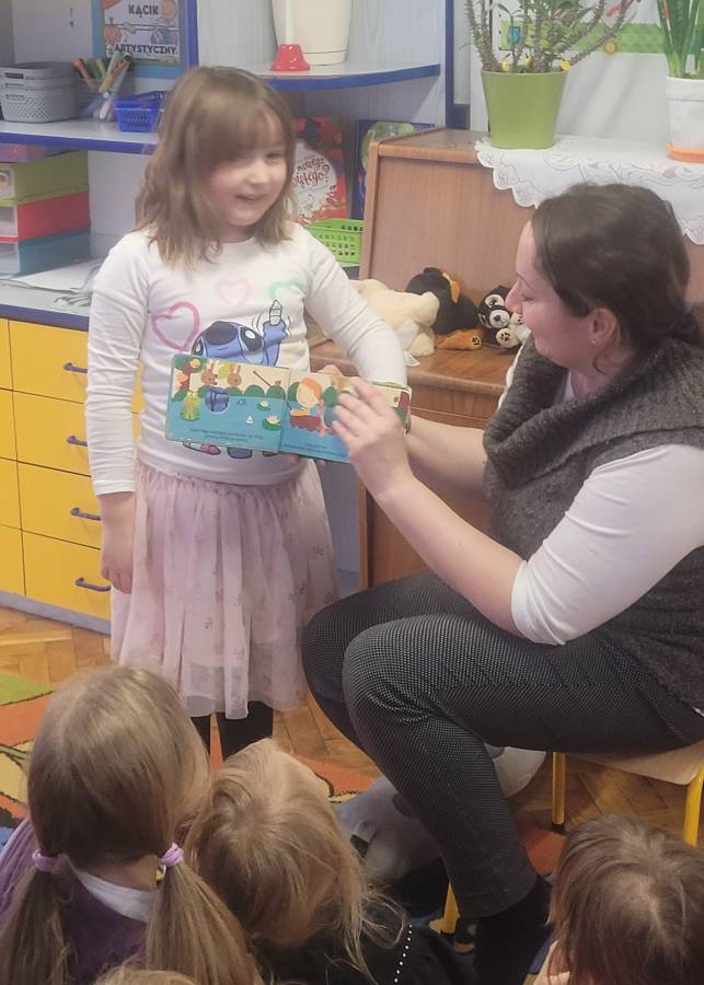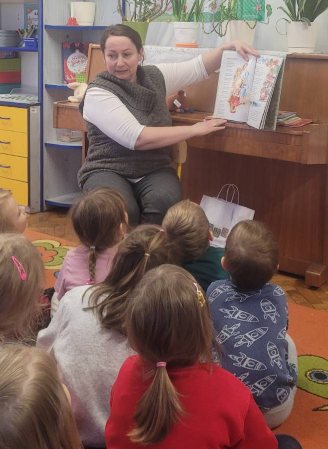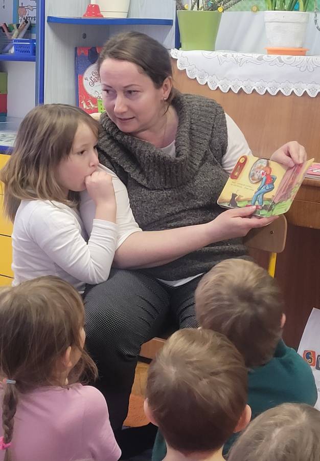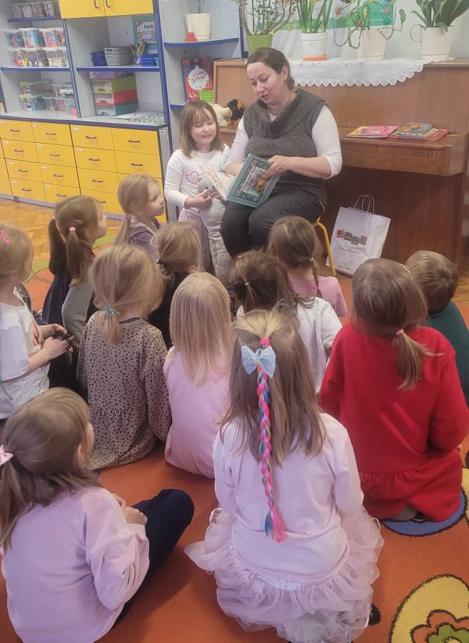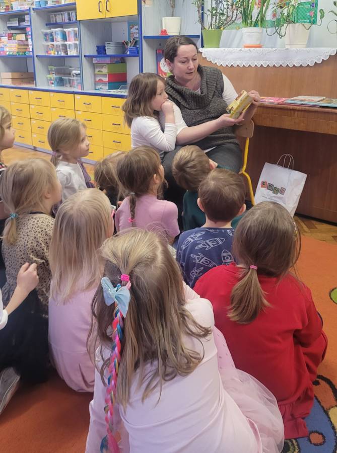 26 stycznia, w ramach akcji „Cała Polska Czyta Dzieciom”, grupę Motylków odwiedziła pani Joanna – mama Lenki. Przeczytała dzieciom krótkie, rymowane historyjki z książki pt. „Na łące” Anny Edyk-Psuł oraz opowiadania: „Mój najlepszy przyjaciel i ja. Kuba i Filuś”, „Tańcowała igła z nitką”, „Kicia Kocia sprząta” oraz „Kicia Kocia na lotnisku” autorstwa Anity Głowińskiej. To już kolejny Rodzic, który wziął udział w tej ciekawej i wartościowej akcji. Dzieci, których Rodzice odwiedzają przedszkole, aby poczytać im książki, przeżywają wiele różnych emocji. Z jednej strony czują ogromną radość i ekscytację, że mogą spędzić czas z mamą lub tatą w miejscu, gdzie zwykle bawią się z rówieśnikami. Z drugiej strony pojawia się duma i poczucie wyjątkowości – dzieci czują się ważne, kiedy ktoś bliski angażuje się w ich codzienne życie przedszkolne. Takie spotkania wywołują też zaciekawienie opowiadanymi historiami oraz radość ze wspólnego śmiechu i zabawy. To doświadczenie wzmacnia więź między domem a przedszkolem i pozostawia w sercach dzieci piękne wspomnienia. Serdecznie dziękujemy pani Joannie za piękne promowanie czytelnictwa i współpracę z przedszkolem.