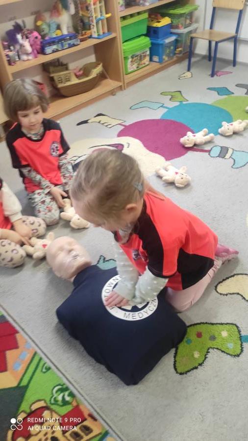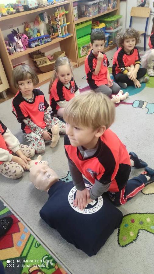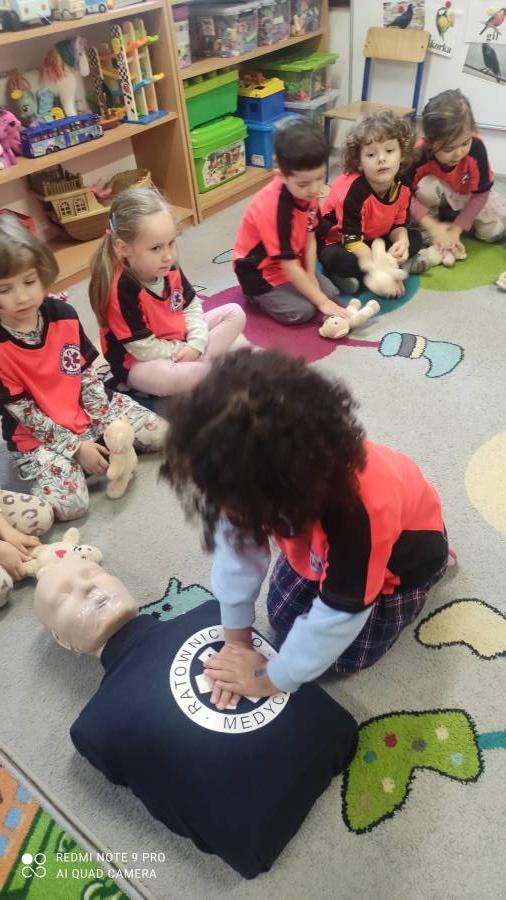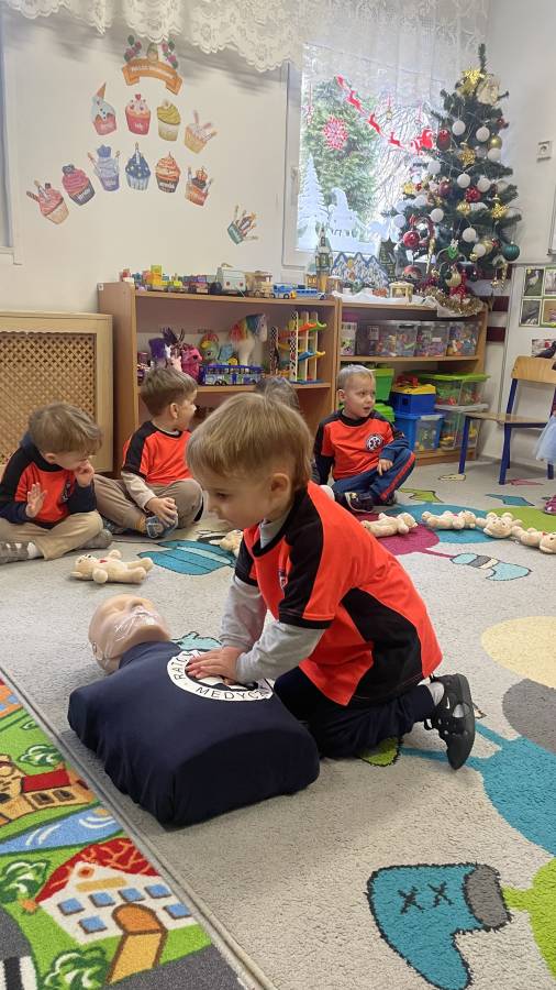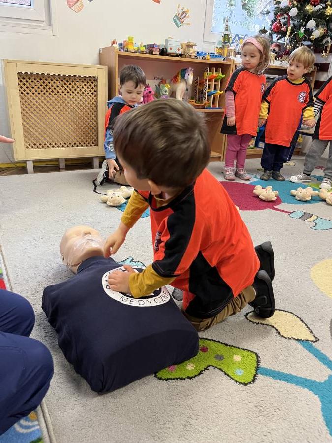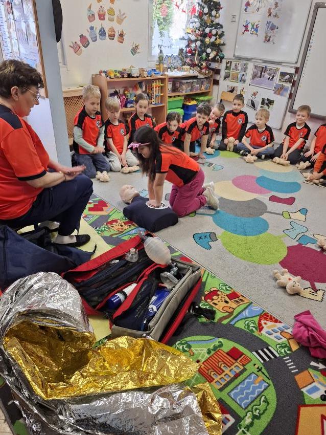 Dzieci aktywnie uczestniczyły w pokazach i miały okazję przećwiczyć masaż serca na fantomie, co sprawiło im wiele radości i było cenną praktyczną lekcją pierwszej pomocy. Na zakończenie spotkania każde dziecko otrzymało pamiątkowy dyplom, który przypomina o zdobytej wiedzy i umiejętnościach.