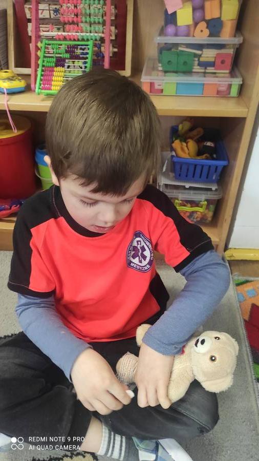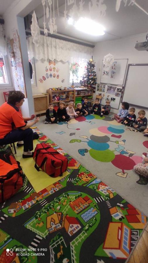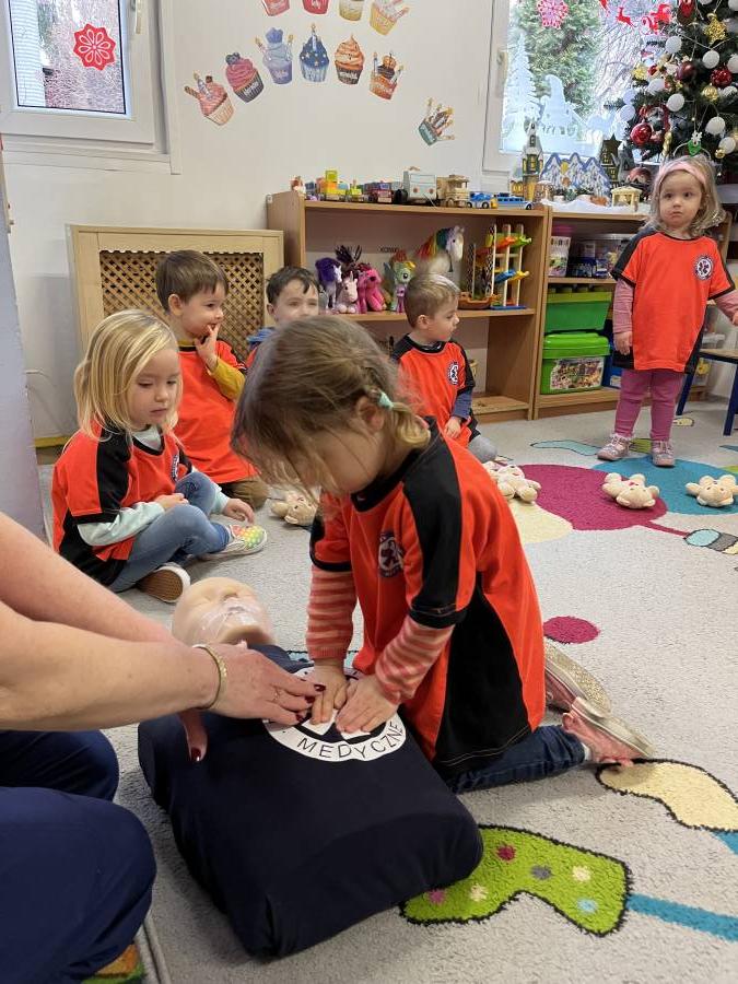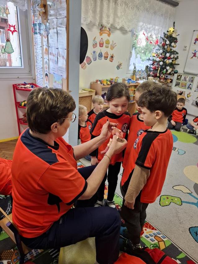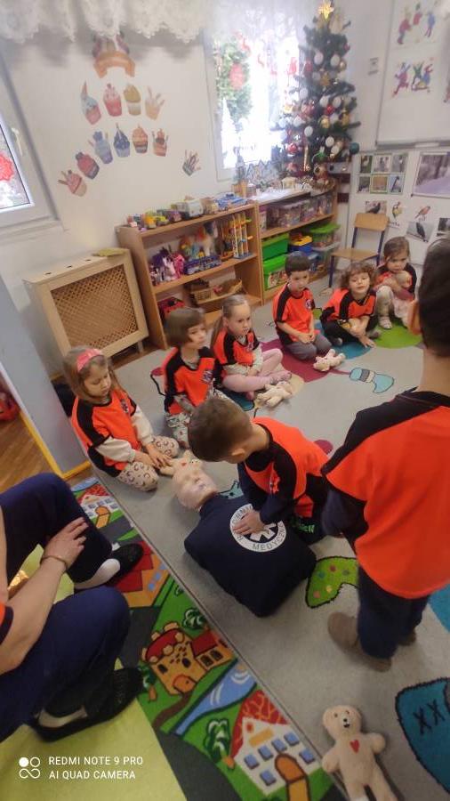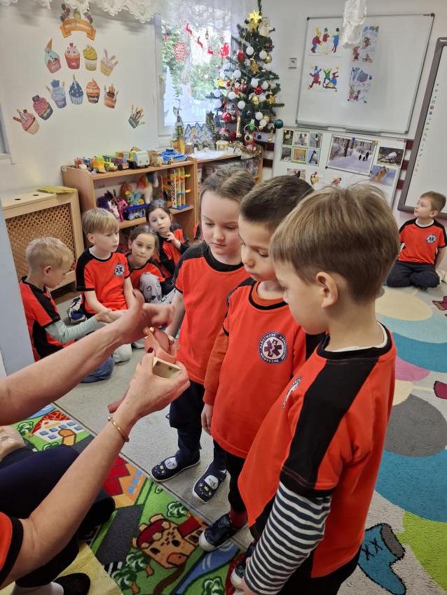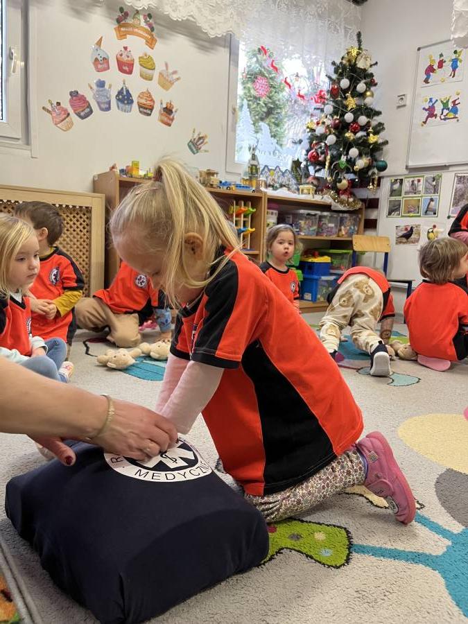 Podczas spotkania przedszkolaki miały możliwość obejrzenia podstawowego sprzętu medycznego, a także dowiedziały się, jak wezwać pomoc w nagłych sytuacjach. Ratownik w przystępny sposób pokazał dzieciom, jak prawidłowo opatrywać drobne skaleczenia i jak dbać o bezpieczeństwo swoje oraz innych.
