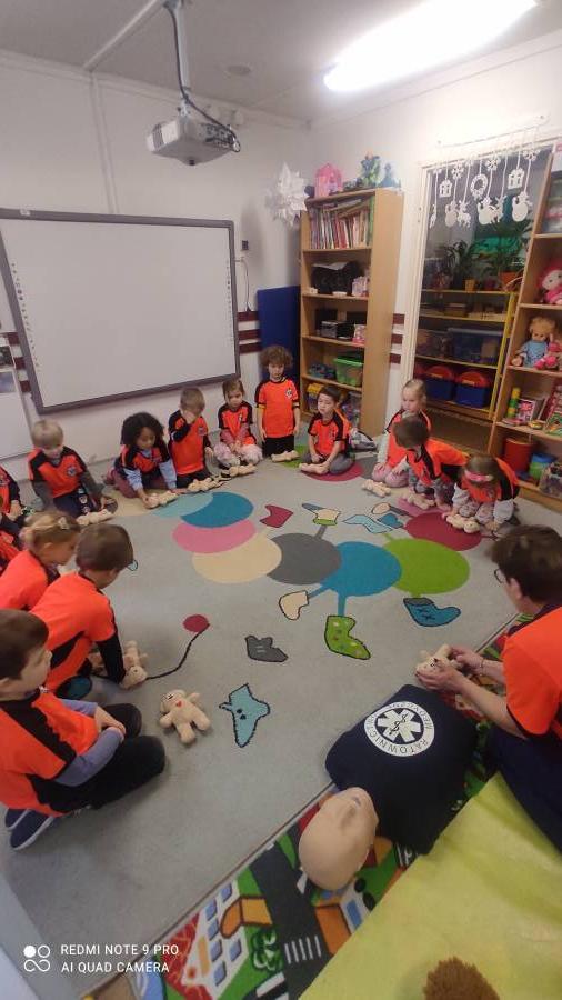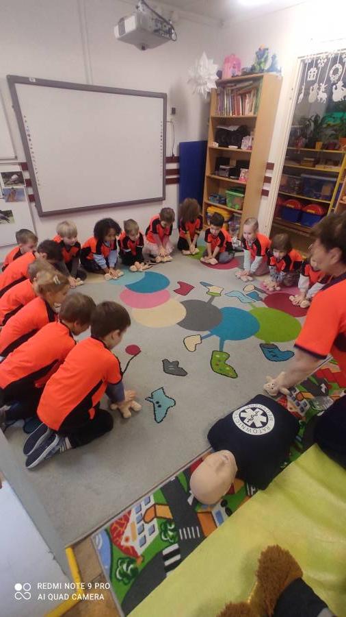 W dniu 26 stycznia 2026 r. w naszym przedszkolu odbyło się wyjątkowe spotkanie z ratownikiem medycznym. Dzieci miały okazję poznać pracę ratownika, dowiedzieć się, jak udzielać pierwszej pomocy i jak zachować się w sytuacjach zagrożenia zdrowia.