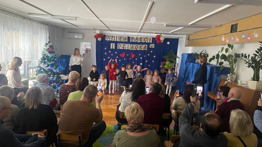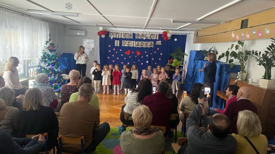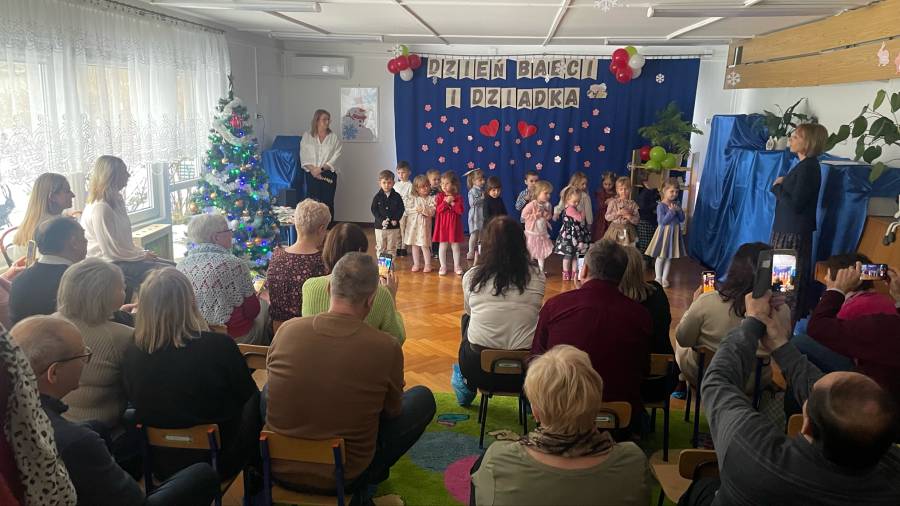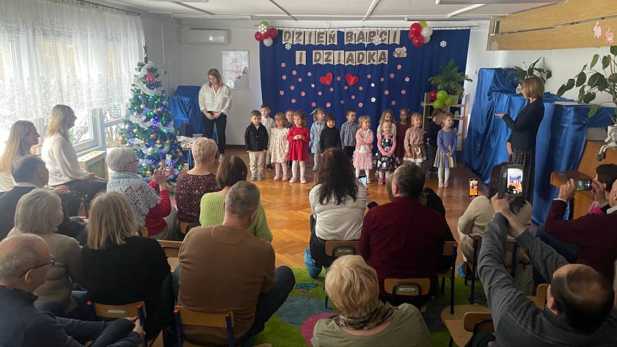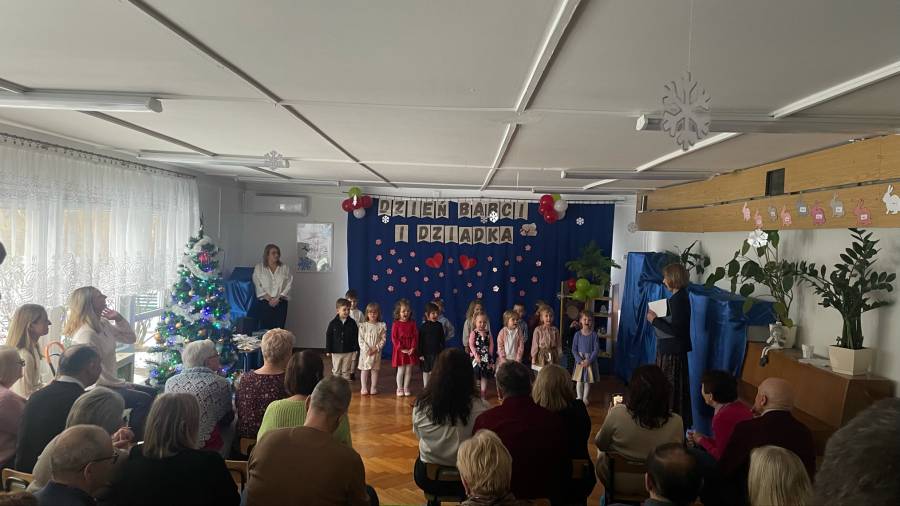 W dniu 28.01.2026 w grupie ,,Zajączki" odbyła się uroczystość z okazji Dnia Babci i Dziadka. Zaproszeni goście przybyli na występy, aby wspólnie z wnukami i wnuczkami wziąć udział w obchodzch tego święta. Pani Dyrektor serdecznie powitała gości oraz złożyła im piękne życzenia.