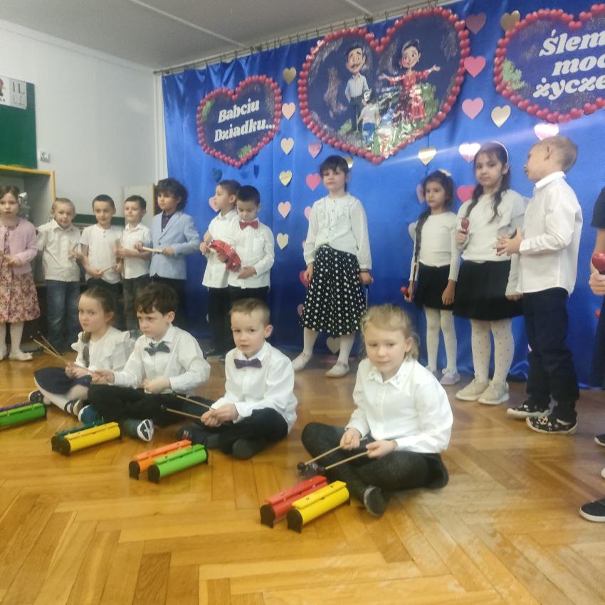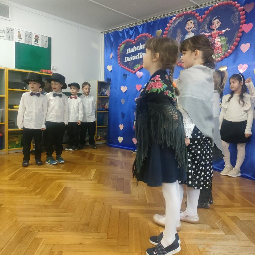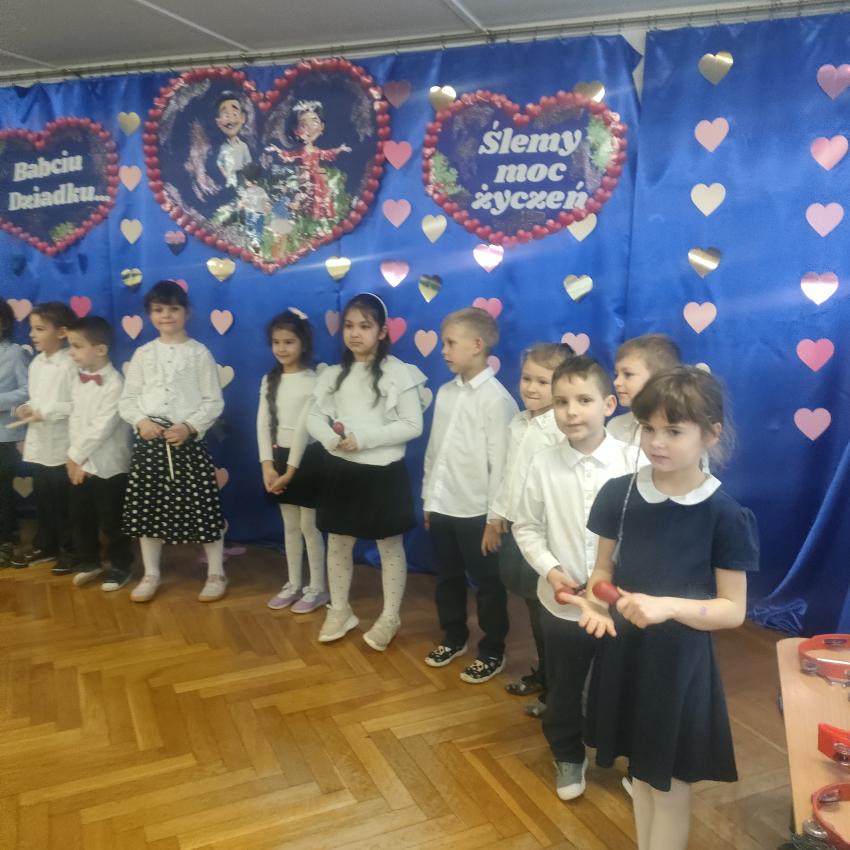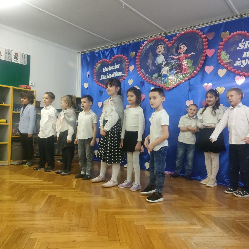 Z okazji Dnia Babci i Dziadka dzieci z grupy „Smoki” przygotowały wyjątkową uroczystość pełną radości i wzruszeń. W programie znalazły się piękne wiersze, piosenki oraz tańce, a także instrumentalne wykonania znanych i lubianych przebojów z lat młodzieńczych babć i dziadków, które z pewnością przywołały wiele miłych wspomnień. Nie zabrakło również niespodzianek – dzieci wręczyły babciom i dziadkom własnoręcznie wykonane prezenty jako wyraz miłości, wdzięczności i szacunku. To było niezwykle ciepłe i rodzinne spotkanie.