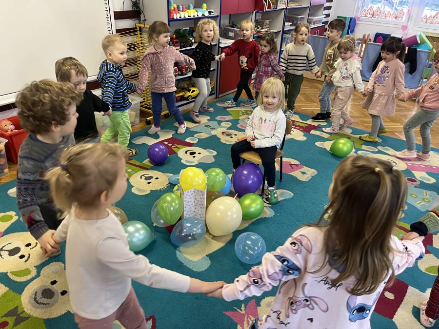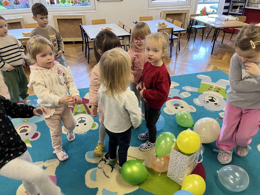 W dniu dzisiejszym w naszej grupie maluchów świętowaliśmy urodziny Basi. Dzieci wspólnie zaśpiewały „Sto lat”, złożyły solenizantce życzenia. Basia była bardzo radosna i z uśmiechem uczestniczyła w zabawach przygotowanych z tej okazji. Nie zabrakło wspólnych tańców, zabaw ruchowych oraz słodkiego poczęstunku. Uroczystość przebiegła w miłej i radosnej atmosferze.