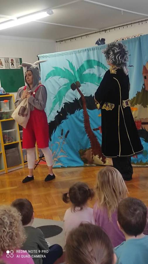 18 lutego odwiedzili nas w aktorzy Teatru Skrzat z przedstawieniem „Nowe przygody Koziołka Matołka”. Koziołek wyruszył w podróż, aby dojść do Pacanowa. Po drodze odwiedził różne kraje, spotkał złą czarownicę, wodza afrykańskiego plemienia, cesarza Chin, króla, a nawet reżysera z Hollywood. Niestety Koziołek Matołek nie dotarł do upragnionego celu. Obiecał jednak dzieciom, że wkrótce wyruszy w kolejną podróż w poszukiwaniu Pacanowa. Przedszkolaki aktywnie uczestniczyli w przedstawieniu, angażując się w śpiew z głównym bohaterem. Bajka dostarczyła dzieciom wielu niezapomnianych wrażeń, dobrej zabawy i dużo uśmiechu!!!