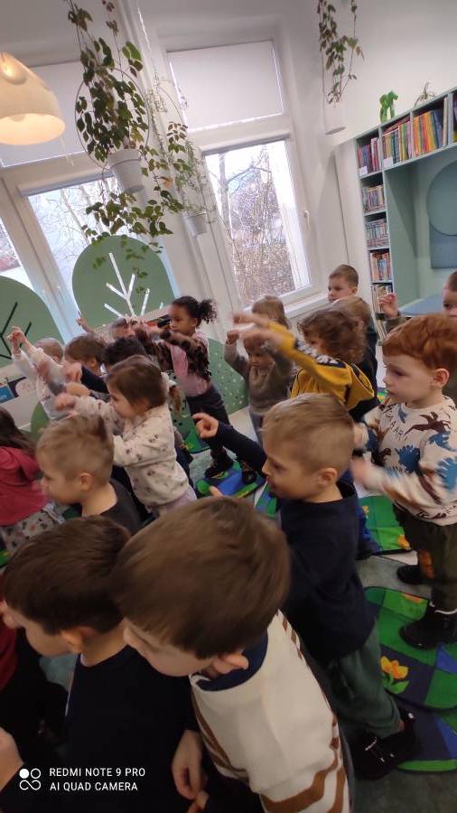 Kolejnym świątecznym akcentem było wspólne śpiewanie piosenek i kolęd. Dzieci chętnie ćwiczyły nowe utwory, a także przypominały sobie dobrze znane świąteczne melodie. Wspólne śpiewanie dostarczyło wszystkim wielu radosnych chwil i stało się okazją do integracji całej grupy.