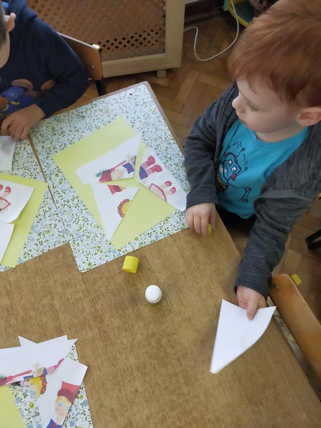 Wspólnie z Titkiem dzieci z grupy "Skrzaty" wykonały pierwsze zadanie pt."Titek i trudna sztuka zmieniania nastawienia".  Na początku zajęć dzieci zostały zapoznane z książką pt." Titek chce jeszcze jedną bajkę". Nauczyciel następnie wytłumaczył dzieciom, że  zwykle, kiedy musimy przestać robić coś, co bardzo lubimy, czujemy smutek i złość. Niestety, nie zawsze da się uniknąć takich sytuacji, dlatego dzieci nauczyły się, co można zrobić, aby takie zdarzenia nie były dla nich przykre, a nawet więcej – żeby mogli czerpać radość z robienia wielu rzeczy zamiast jednej. Na zakończenie zajęć dzieci wykonały zakładkę do książki, którą mogły zabrać ze sobą do domu.