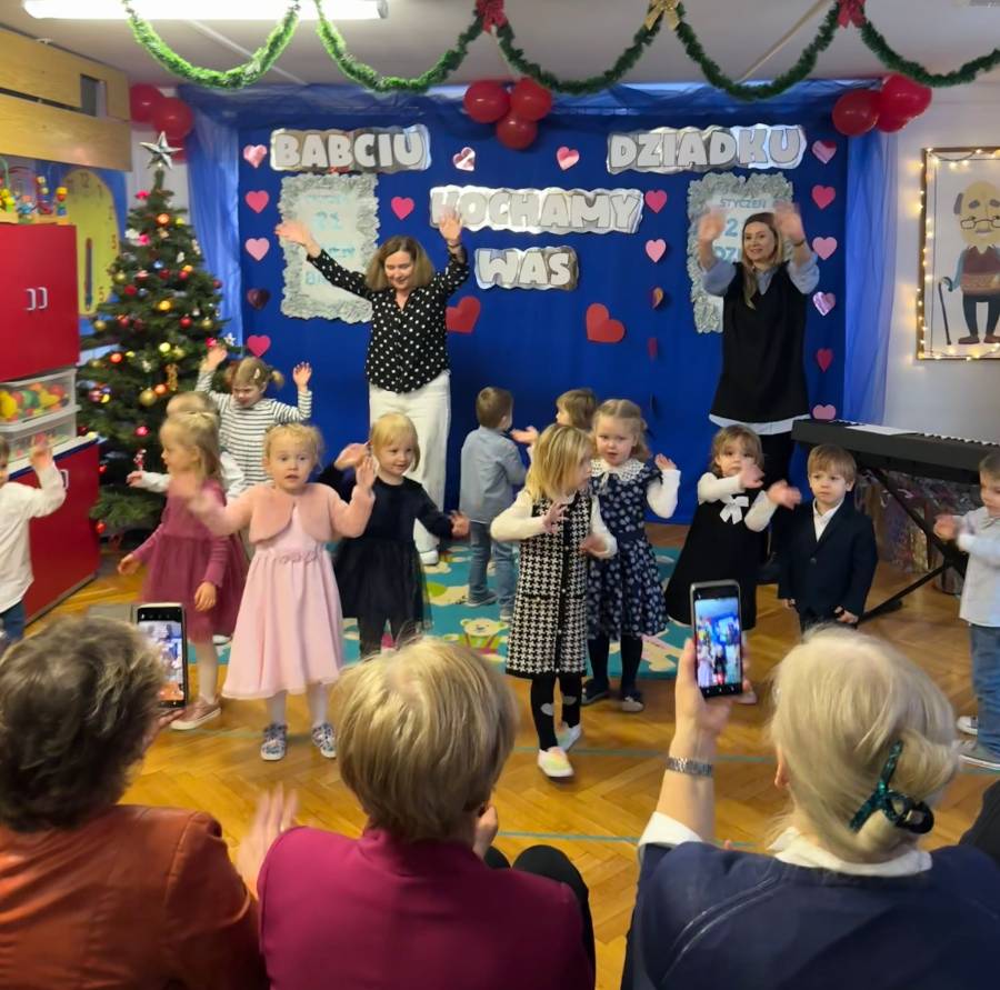 Z tej okazji dzieci gościły swoje Babcie i Dziadków na wyjątkowym spotkaniu, podczas którego zaprezentowały przygotowane z ogromnym zaangażowaniem wiersze, piosenki oraz układy choreograficzne. Występy wzruszyły zaproszonych gości i zostały nagrodzone gromkimi brawami.