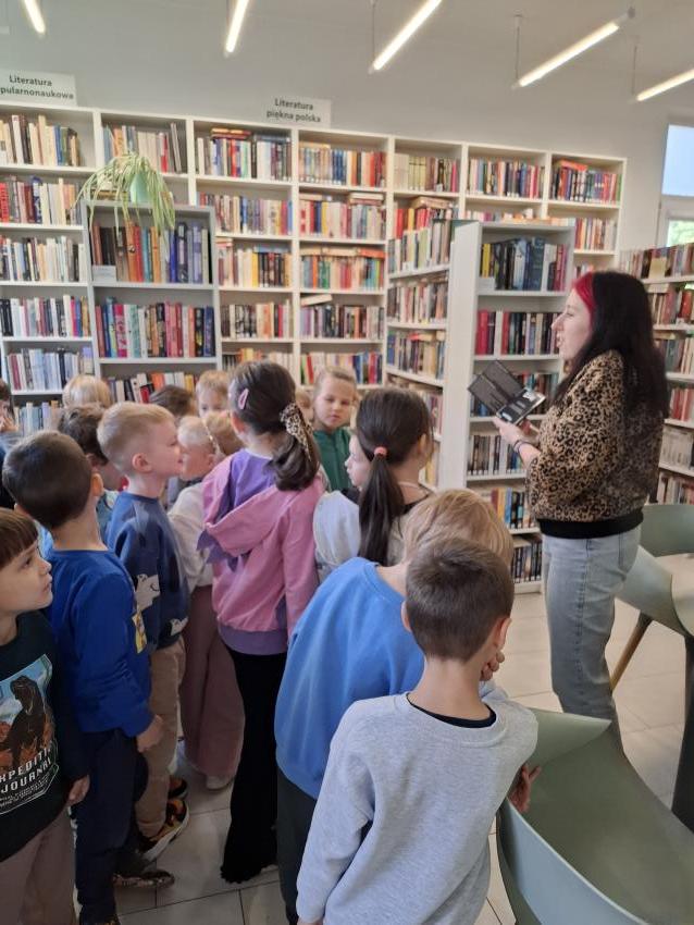 W dniu 18.09. 2025 r. dzieci z grupy "Smoki" wybrały się do Biblioteki Publicznej przy ulicy Brodowicza 1. Była to kolejna wyzyta w tym magicznym miejscu wśród tylu książek, mamy nadzieję, że nieostatnia. Dzieci przypomniały sobie zasady korzystania z biblioteki takie jak: cisza, dbałość o książki i terminowe ich oddawanie. Wysłuchaliśmy opowiadania pt. "Kicia Kocia na lotnisku". Wszyscy z radością wzięli udział w zabawie plastycznej, której efektem końcowym był uroczy zajączek. Zachęcamy Rodziców razem z dziećmi do odwiedzenia biblioteki oraz założenia dzieciom karty bibliotecznej, aby dzieci mogły wypożyczyć ulubioną książeczkę. Wizyty w bibliotece uczą dzieci podejmowania samodzielnych decyzji oraz odpowiedzialności za wypożyczone książki. To również doskonały sposób, aby rozwijać u dzieci zainteresowania czytelnicze oraz kształtować pozytywny stosunek do książki i kultury czytelniczej. Serdecznie dziękujemy pani bibliotekarce za miło spędzony czas, życzliwą atmosferę oraz wspaniałą lekcję.