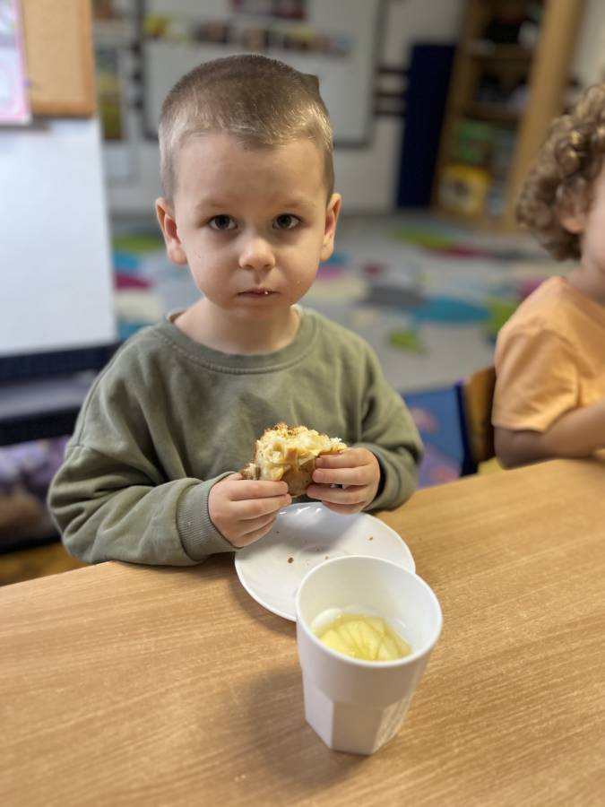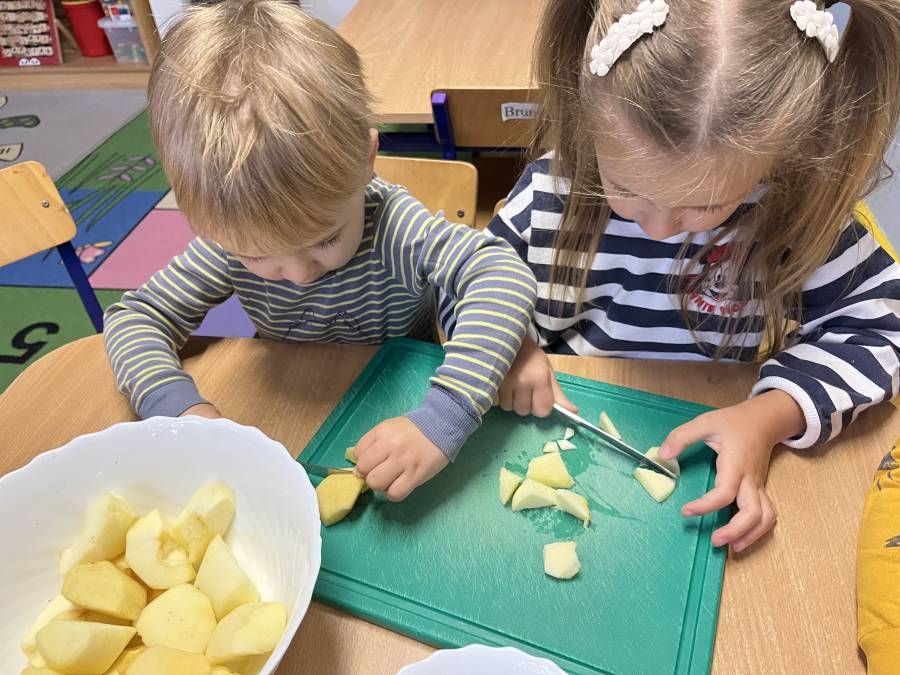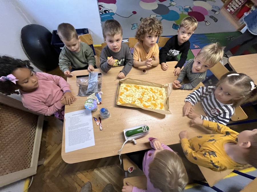 z okazji Dnia Owoców i Warzyw nasze "Skrzaty" wzięły udział w wyjątkowych zajęciach kulinarnych – wspólnie upiekliśmy pyszne ciasto owocowe!
