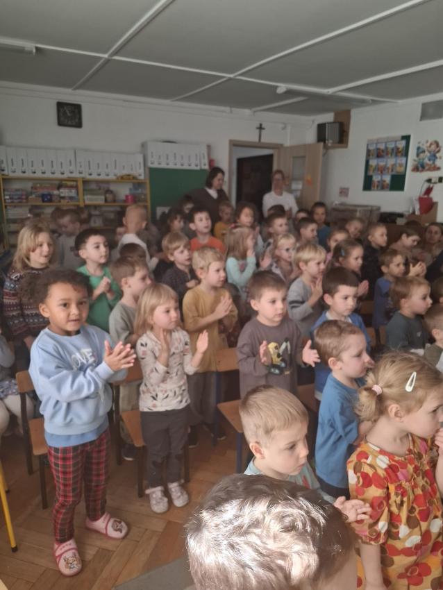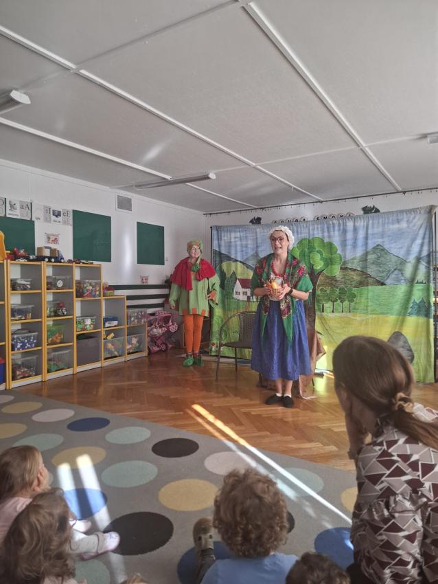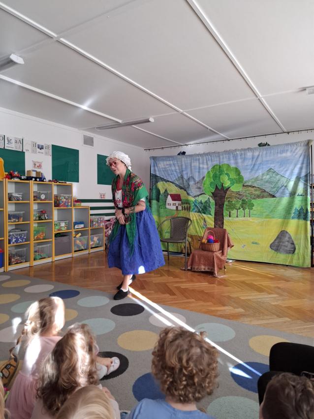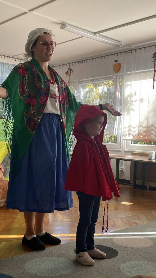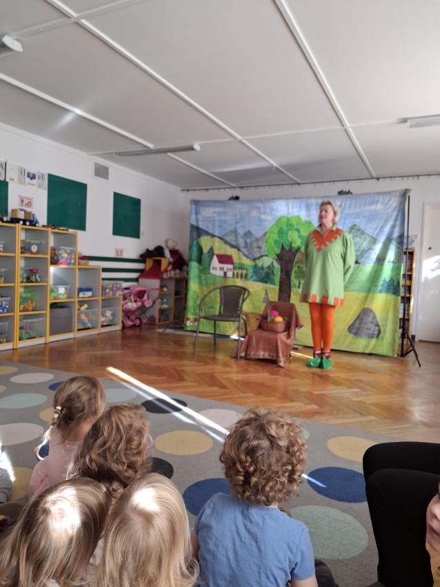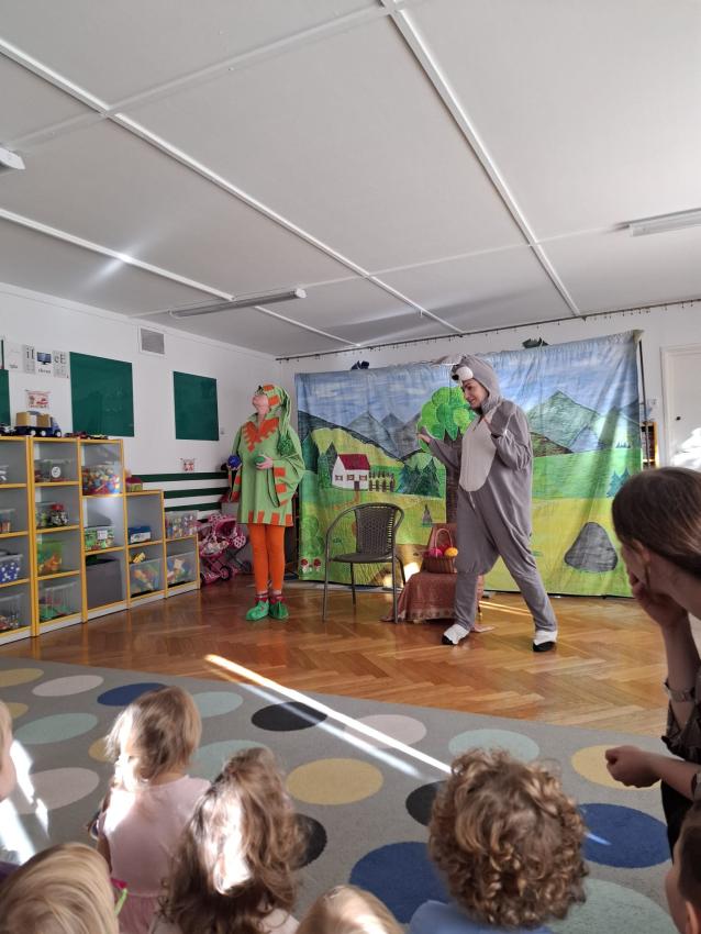 Dziś odwiedzili nas aktorzy teatrzyku "Skrzat" z przedstawieniem "O babci, krasnoludku i kolorowych kulkach" Razem z krasnoludkiem dzieci wybrały się w niezapomnianą podróż. przedstawienie opowiadało o przygodach krasnoludka, babci Danusi, kota Psotnika, myszy, zająca, i zbuja, często poruszająć tematy właściwego odżywiania, ubierania się stosownie do pogody oraz szanowania cudzej własności. Podczas oglądania bajki dzieciom towarzyszyły radosne emocje.