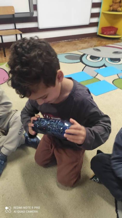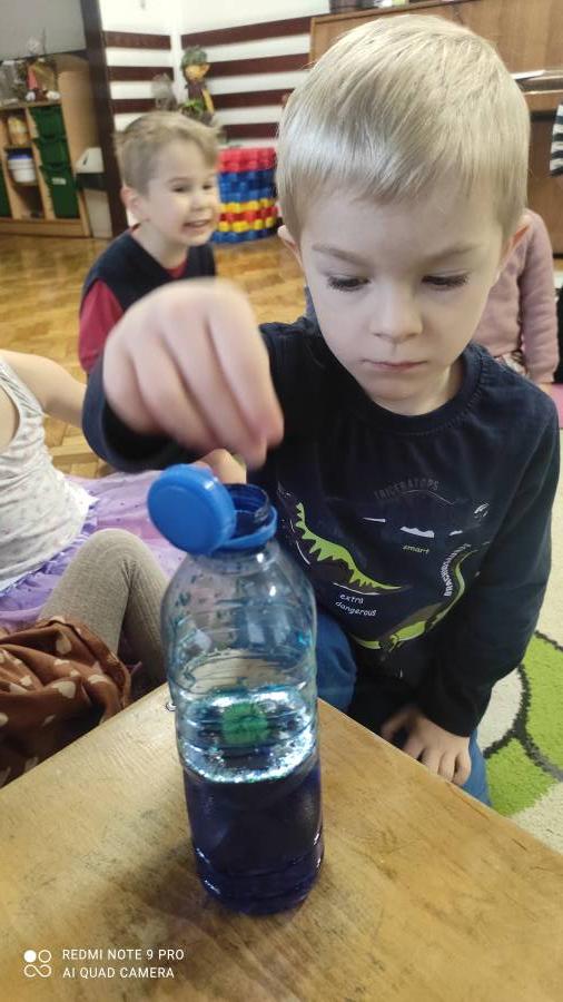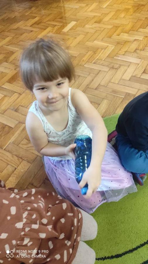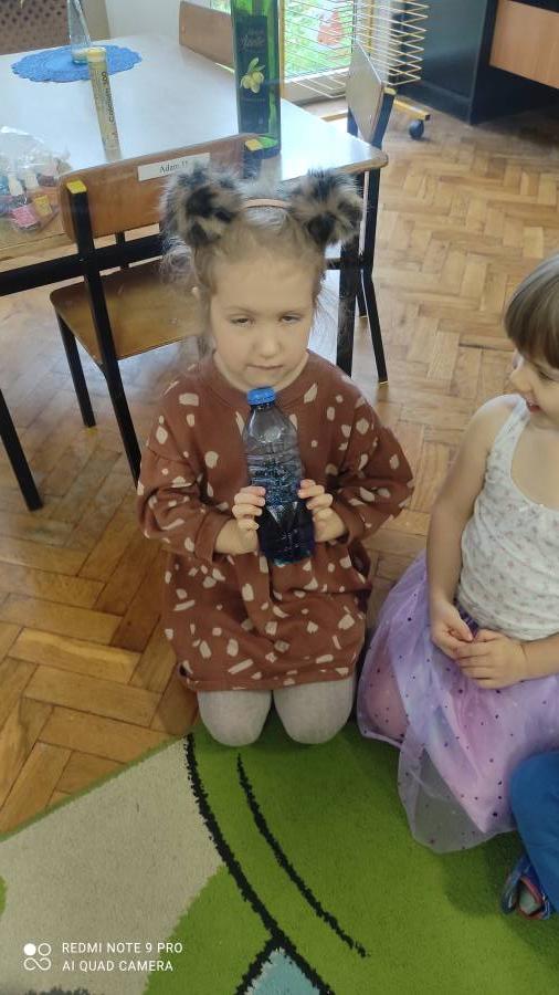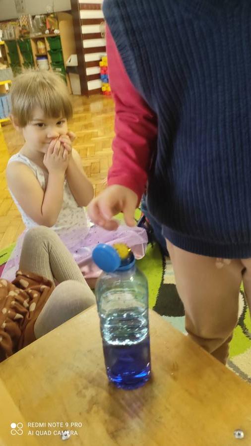 Kolejnym zadaniem było wykonanie magicznych sensorycznych butelki. Woda, brokat, cekiny zamieniły się w niezwykłe, błyszczące mikstury, które dzieci mogły potrząsać, obserwując, jak wszystko powoli opada i wiruje.
