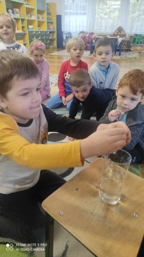 W tym tygodniu dzieci z grupy „Słoneczka” wyruszyły w niezwykłą, pełną barw i bąbelków przygodę z wodą! -połączenie eksperymentów, zabaw sensorycznych i twórczości plastycznej. Na początku zajęć rozmawialiśmy o tym, do czego potrzebna jest woda i jakie ma właściwości.