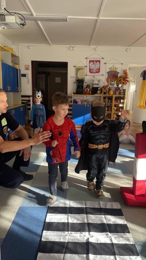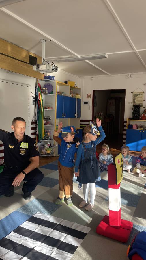 Dnia 5.11.2025 w naszym przedszkolu odbyło się bardzo ciekawe spotkanie grupy „Misiów” i grupy "Zajączków" ze Strażnikiem Miejskim. Tematem zajęć było bezpieczeństwo na drodze.