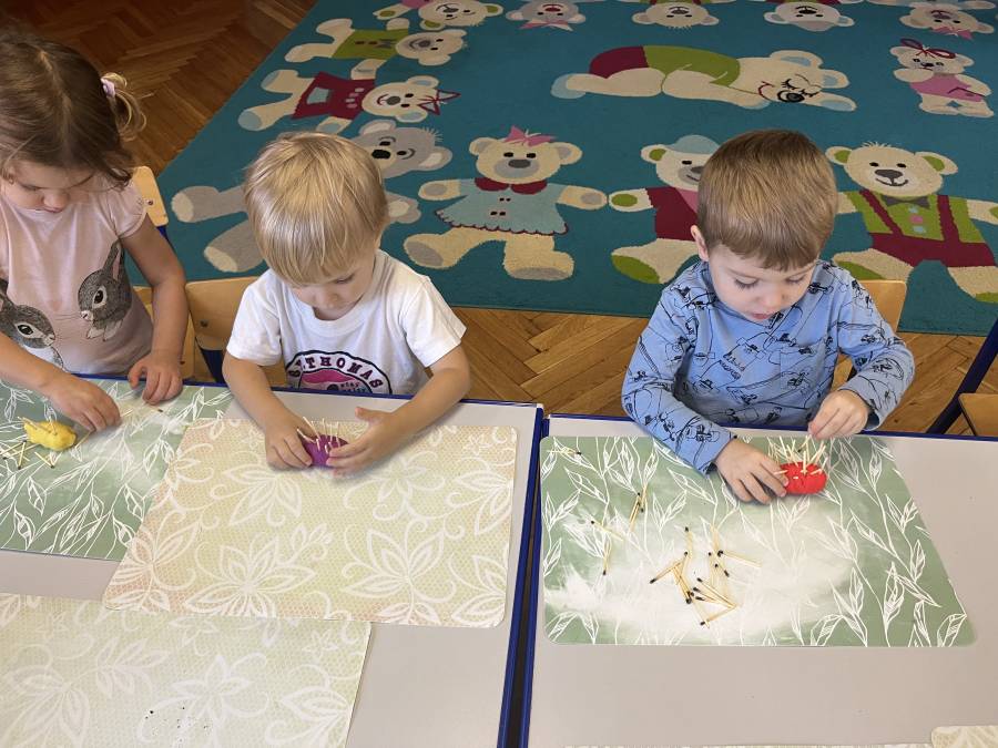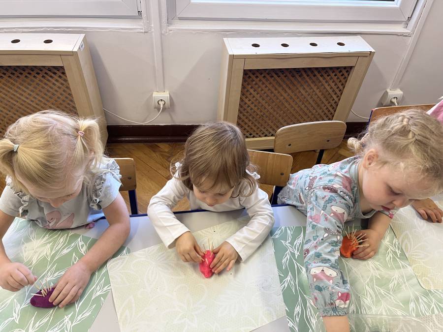 W ramach zajęć dydaktycznych dzieci uczyły się rozpoznawać i nazywać owoce oraz warzywa, uczestniczyły w zabawach muzyczno-ruchowych o tematyce jesiennej, a także rozwijały swoje zdolności manualne, tworząc kolorowe jesienne drzewa, wiewiórki i jeże.
