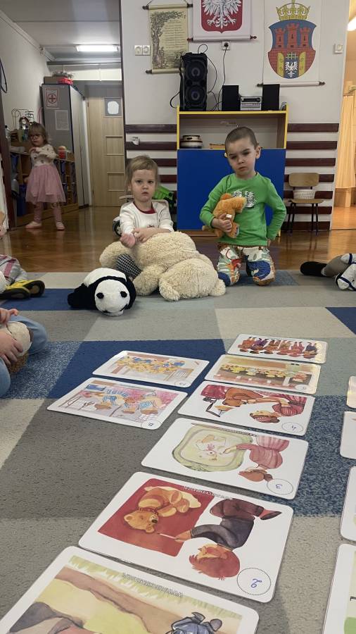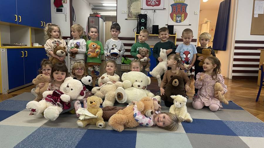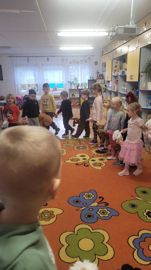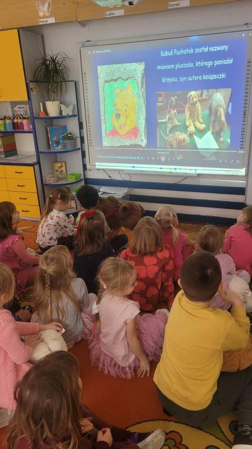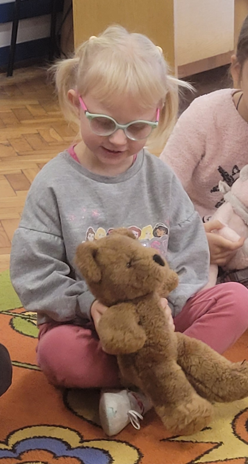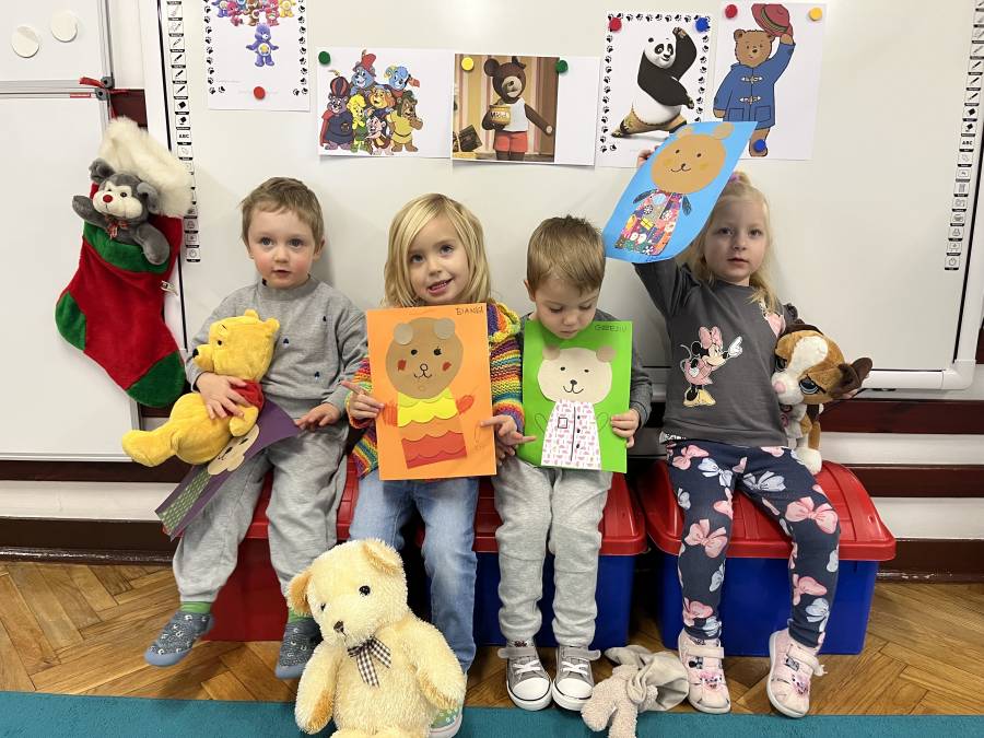 Podczas zajęć dzieci dowiedziały się, dlaczego obchodzimy Dzień Pluszowego Misia. Poznały historię powstania pierwszego misia – od opowieści o prezydencie Theodore’u Roosevelcie, który podczas polowania wypuścił małego niedźwiadka, aż po stworzenie pierwszej pluszowej zabawki nazwanej „Teddy Bear”. Przedszkolaki z zainteresowaniem wysłuchały tej historii i chętnie odpowiadały na pytania.
