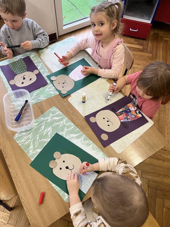 W ciągu dnia dzieci brały udział w wielu misiowych aktywnościach: prezentowały swoje pluszaki, rozwiązywały zagadki o znanych misiach z bajek, tańczyły z misiami oraz wykonywały prace plastyczne – tworząc własne „misiowe portrety”. Każda grupa zrobiła wspólne zdjęcia z dużym przedszkolnym misiem.