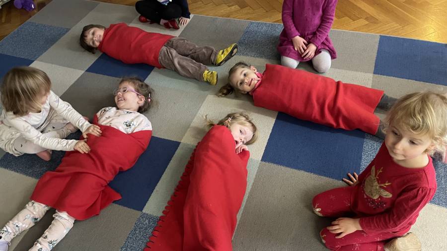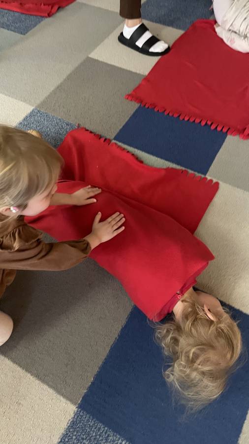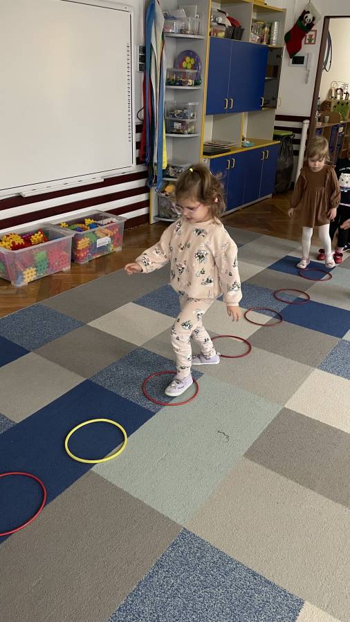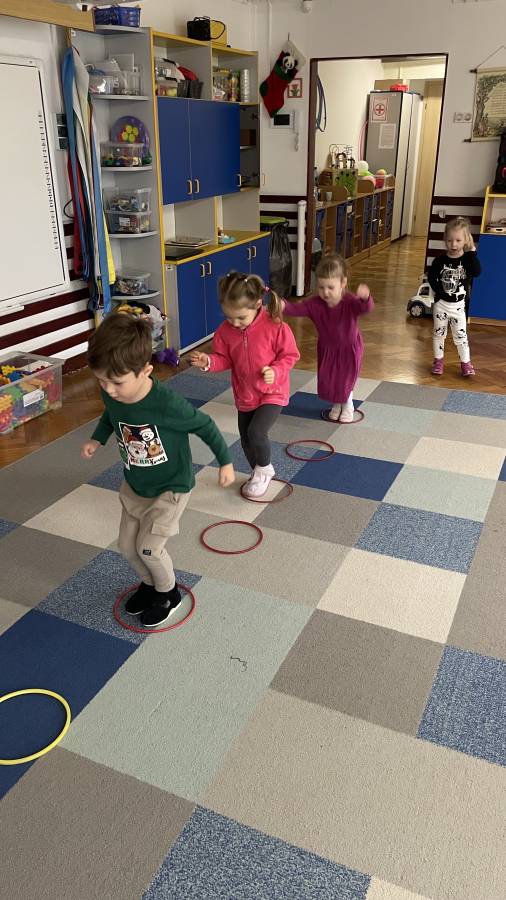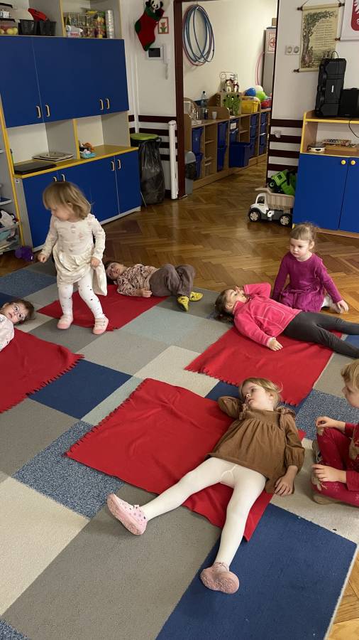 rolę w rozwoju motorycznym i poznawczym dzieci. Umożliwia ona: koordynację ruchową, równowagę, percepcję przestrzenną.  Nasze Zajączki podjęły się wykonania kilku ćwiczeń proprioceptywnych,. Nie zabrakło
