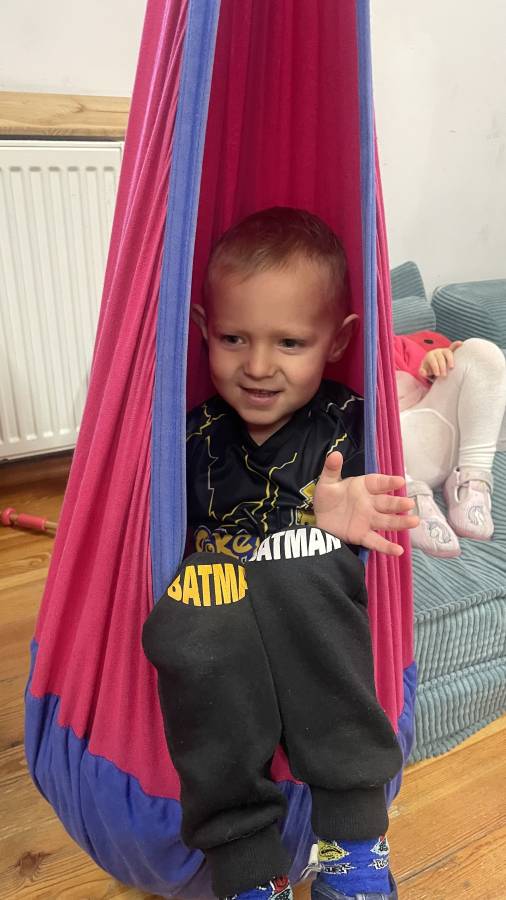 się również worek sensoryczny, do którego dzieci bardzo chętnie wchodziły. Zabawa była naprawdę niesamowita, dzieci miały okazję do