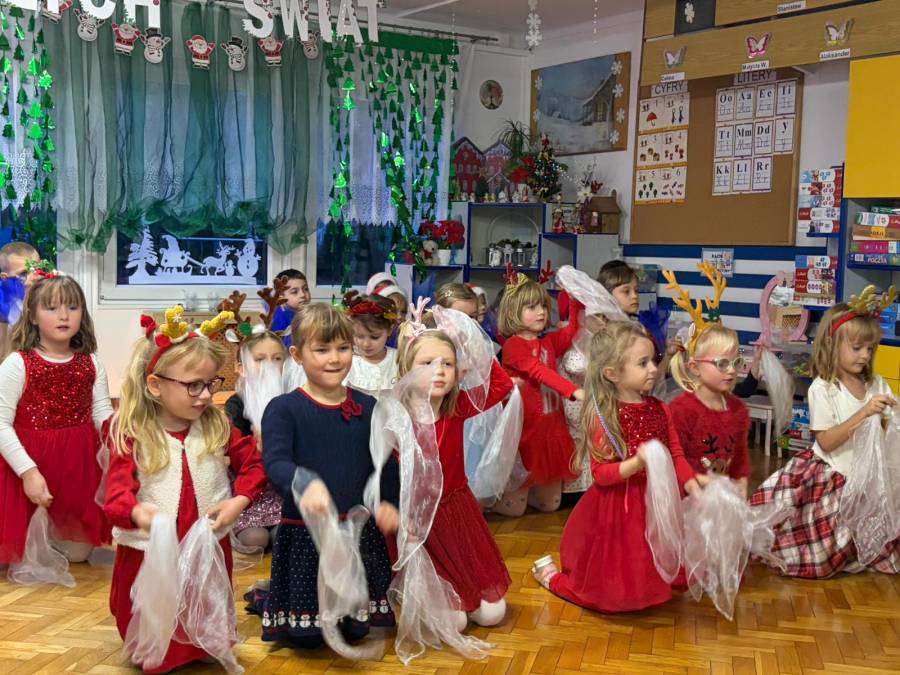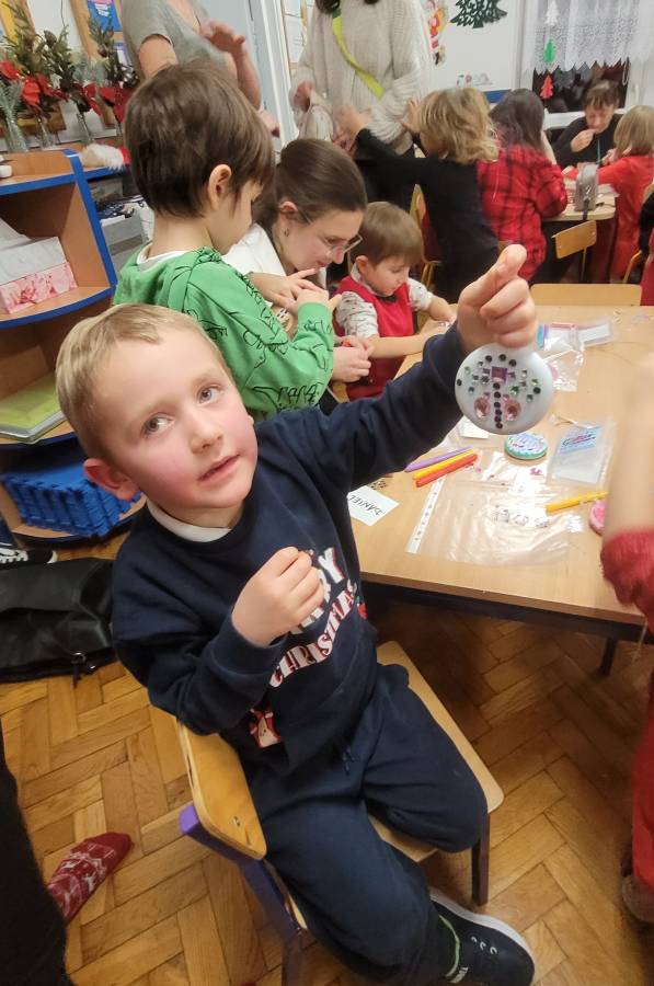 9 grudnia w grupie Motylków odbyły się wyjątkowe warsztaty bożonarodzeniowe, które wprowadziły dzieci i Rodziców w ciepły, świąteczny nastrój. Spotkanie rozpoczęło się od pięknego montażu słowno-muzycznego. Dzieci zaprezentowały wierszowaną historię tradycji świąt, wzbogaconą nastrojowymi pastorałkami oraz radosnymi tańcami. Występ był pełen uroku i zaciekawił wszystkich obecnych, wprowadzając w refleksyjny, świąteczny klimat. Po części artystycznej rozpoczęły się kreatywne warsztaty. Dzieci wraz z Rodzicami ozdabiali wcześniej pomalowane przez dzieci bombki, które mieniły się kolorowymi cekinami i błyszczącymi dodatkami. Dużo radości sprawiło także ozdabianie i składanie “domków piernikowych”. Podczas warsztatów nie zabrakło śmiechu, rozmów i wzruszeń. Rodzice mieli okazję współpracować ze swoimi dziećmi, a efekty wspólnej pracy były naprawdę imponujące! Wszystkie ozdoby można było zabrać do domu.