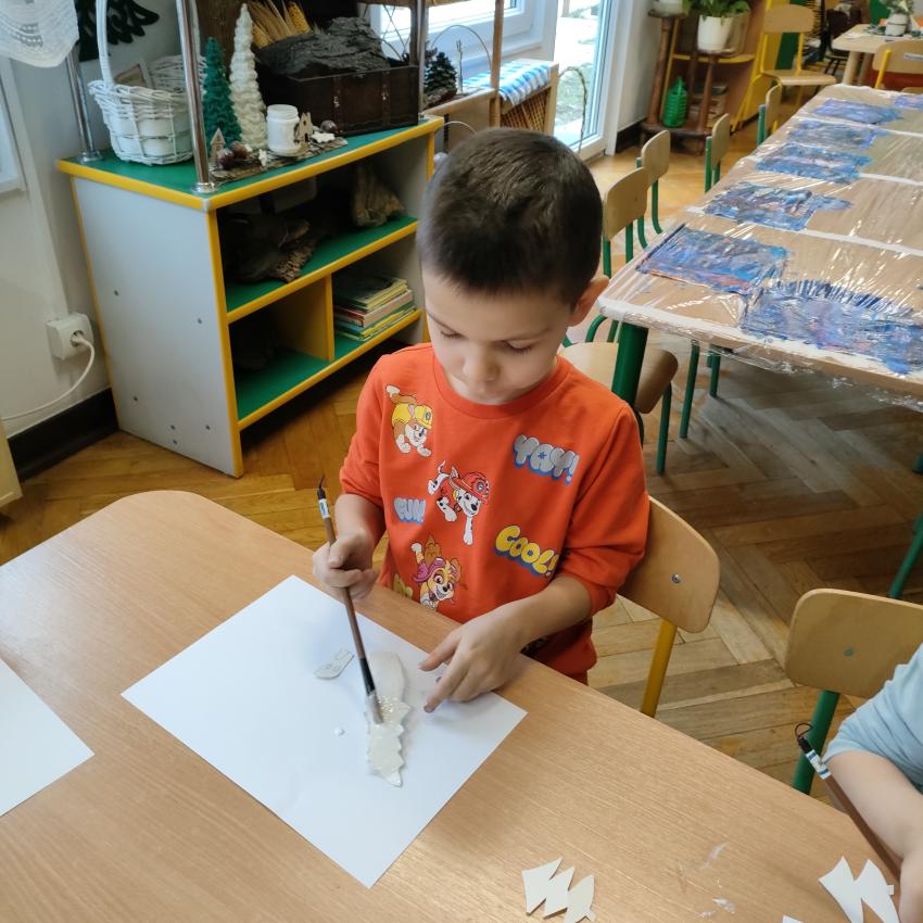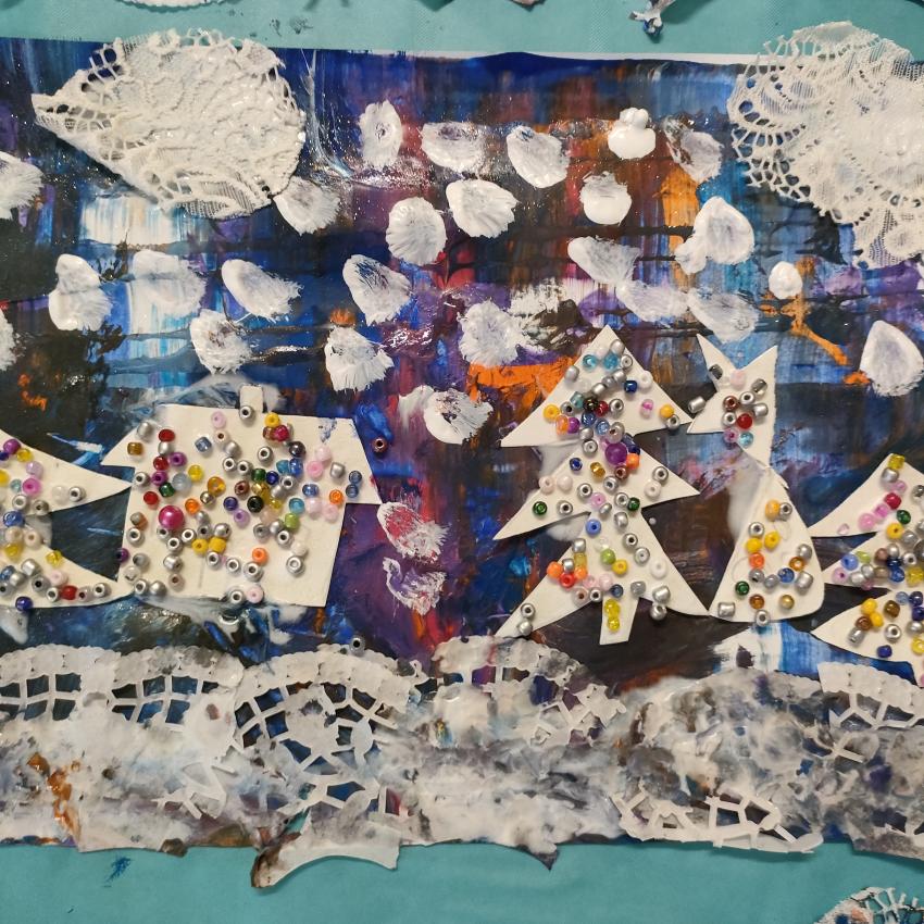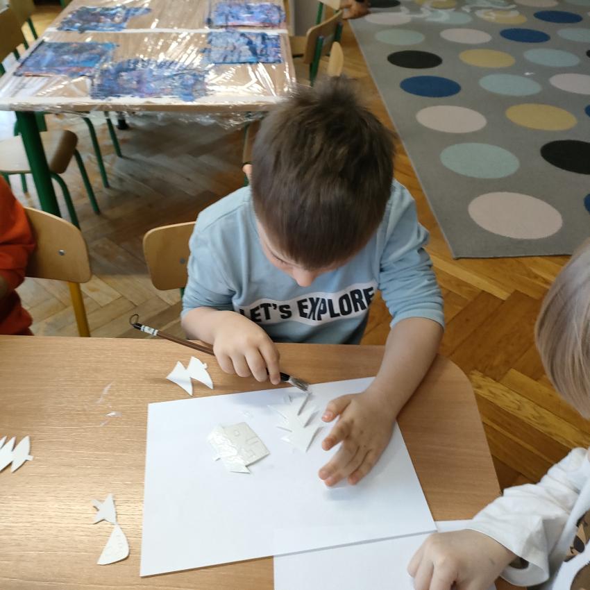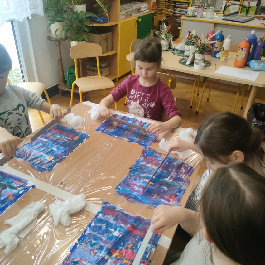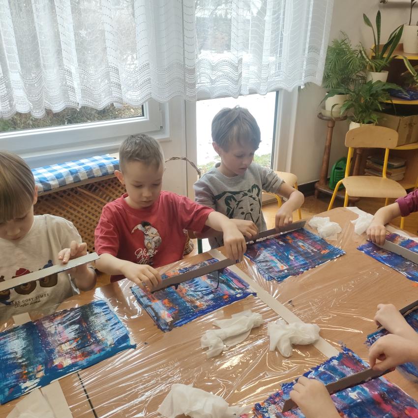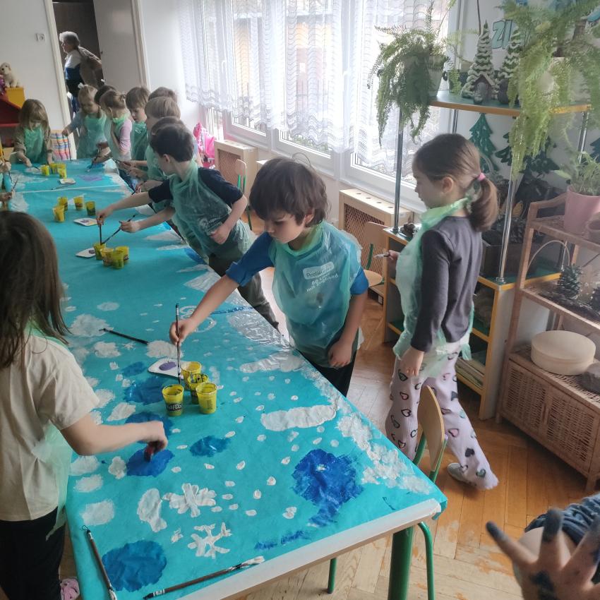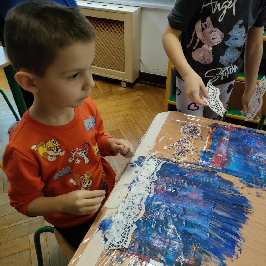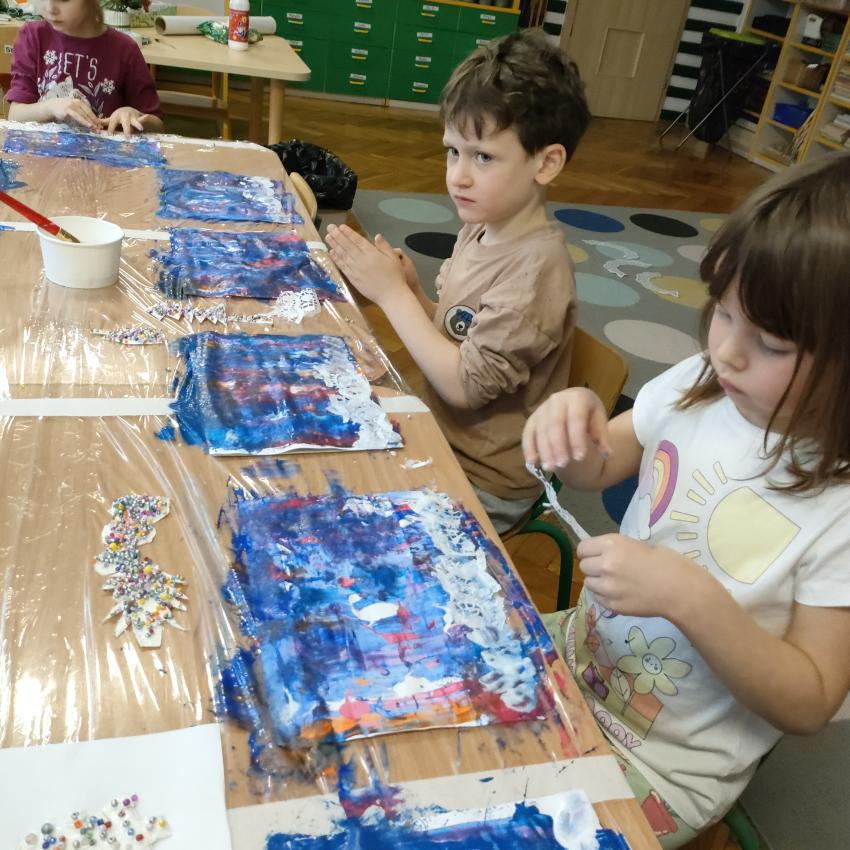 W minionym tygodniu dzieci z grupy „Smoki” eksperymentowały plastycznie, wykorzystując farby jako podstawę swoich działań twórczych. Podczas zajęć powstały piękne, zimowe obrazy wykonane z użyciem ciekawych i bardzo kreatywnych technik plastycznych. Mali artyści z ogromnym zaangażowaniem odkrywali nowe sposoby malowania, rozwijając wyobraźnię, sprawność manualną oraz wrażliwość estetyczną. Efekty ich pracy zachwycają pomysłowością i kolorystyką .