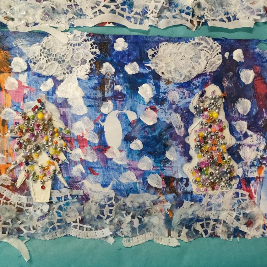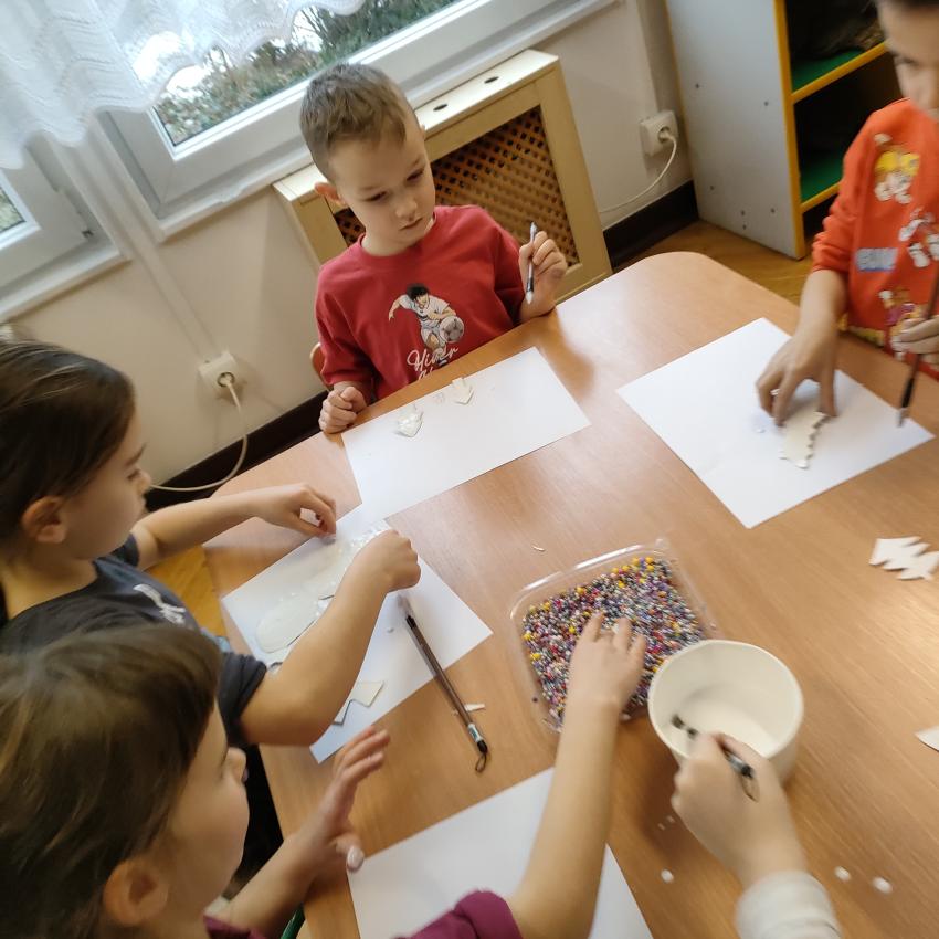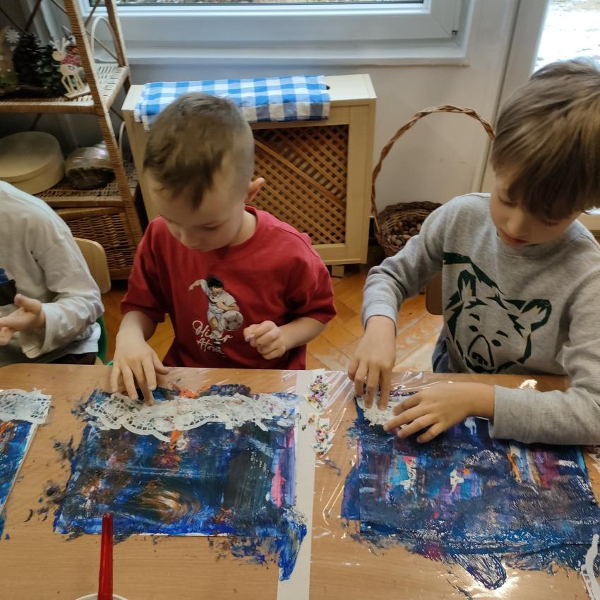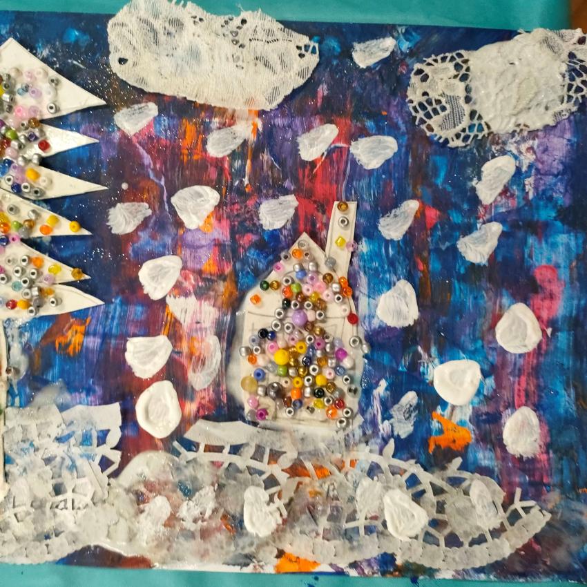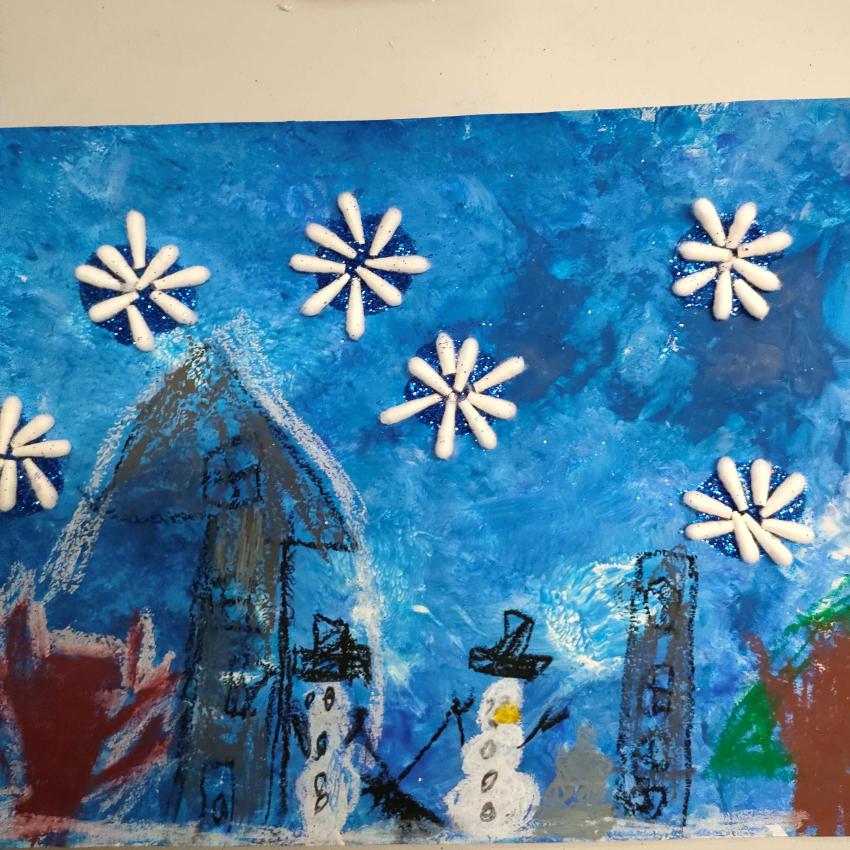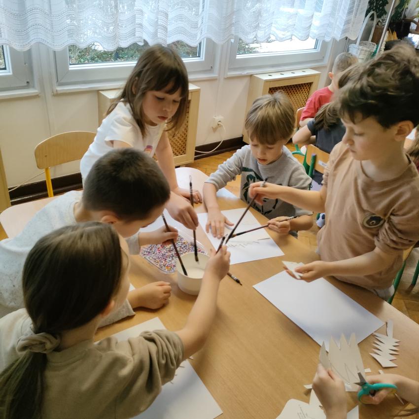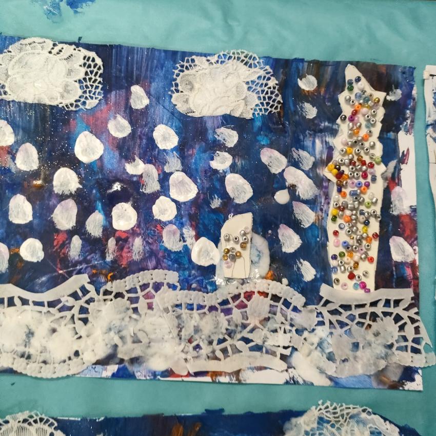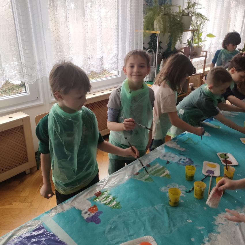 W minionym tygodniu dzieci z grupy „Smoki” eksperymentowały plastycznie, wykorzystując farby jako podstawę swoich działań twórczych. Podczas zajęć powstały piękne, zimowe obrazy wykonane z użyciem ciekawych i bardzo kreatywnych technik plastycznych. Mali artyści z ogromnym zaangażowaniem odkrywali nowe sposoby malowania, rozwijając wyobraźnię, sprawność manualną oraz wrażliwość estetyczną. Efekty ich pracy zachwycają pomysłowością i kolorystyką .