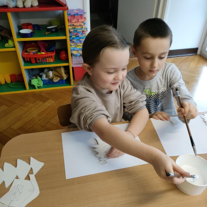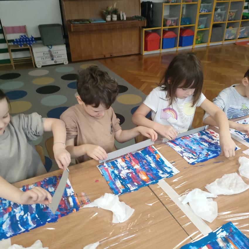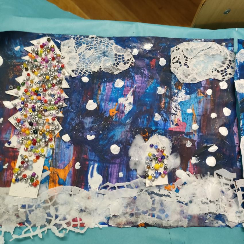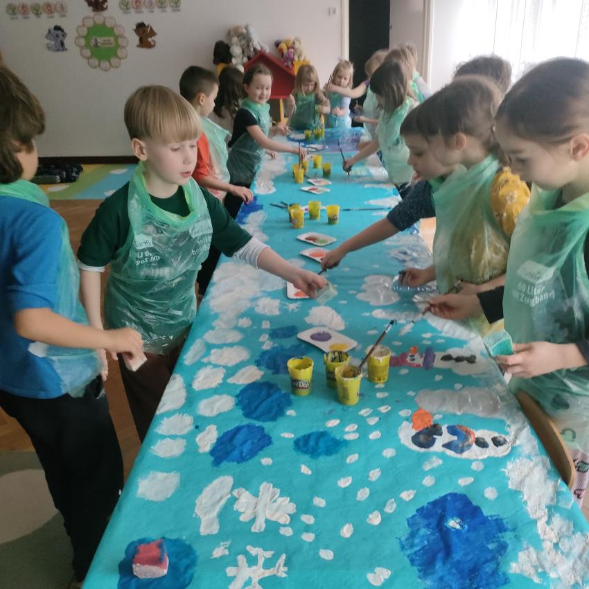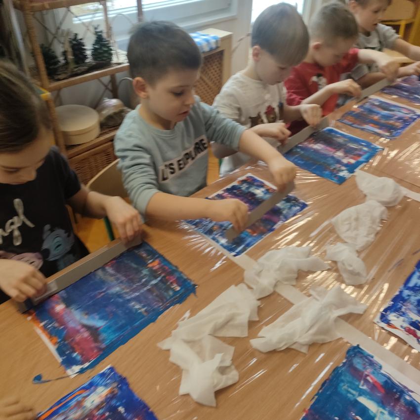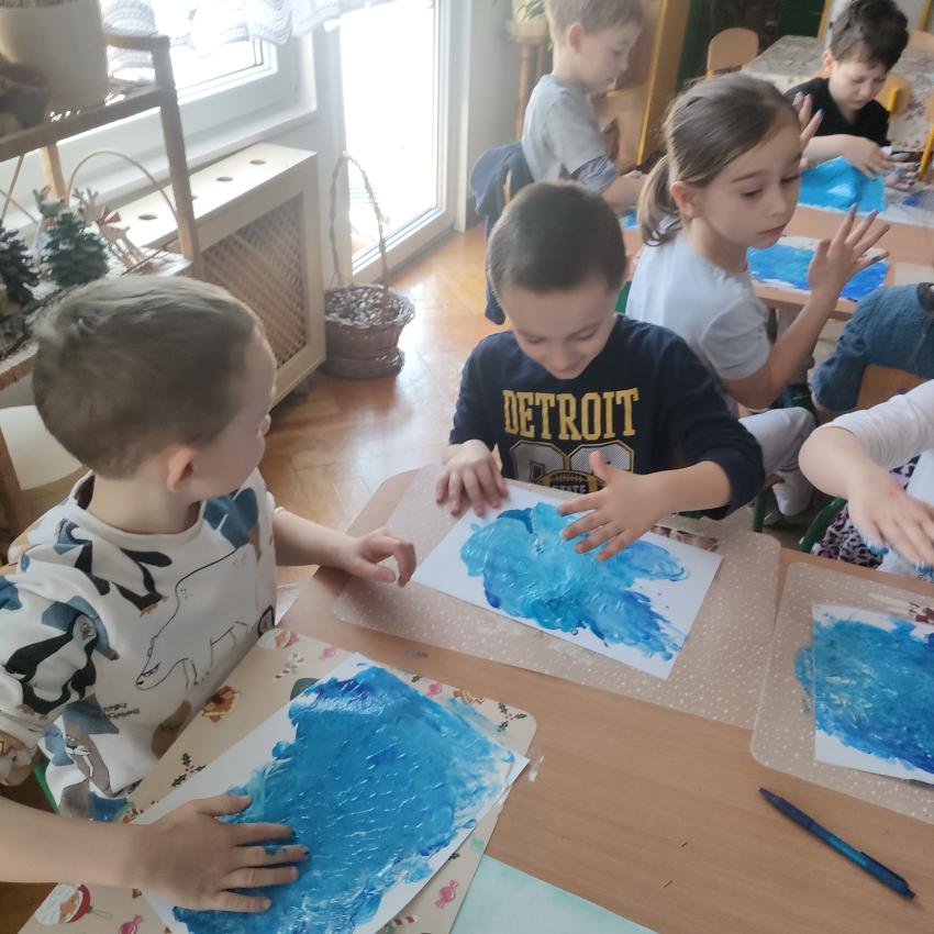 W minionym tygodniu dzieci z grupy „Smoki” eksperymentowały plastycznie, wykorzystując farby jako podstawę swoich działań twórczych. Podczas zajęć powstały piękne, zimowe obrazy wykonane z użyciem ciekawych i bardzo kreatywnych technik plastycznych. Mali artyści z ogromnym zaangażowaniem odkrywali nowe sposoby malowania, rozwijając wyobraźnię, sprawność manualną oraz wrażliwość estetyczną. Efekty ich pracy zachwycają pomysłowością i kolorystyką .