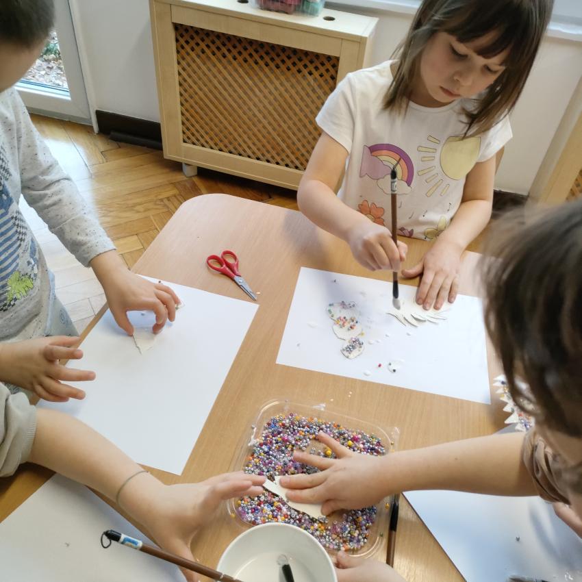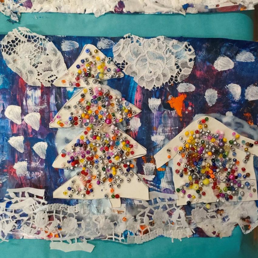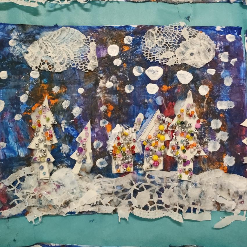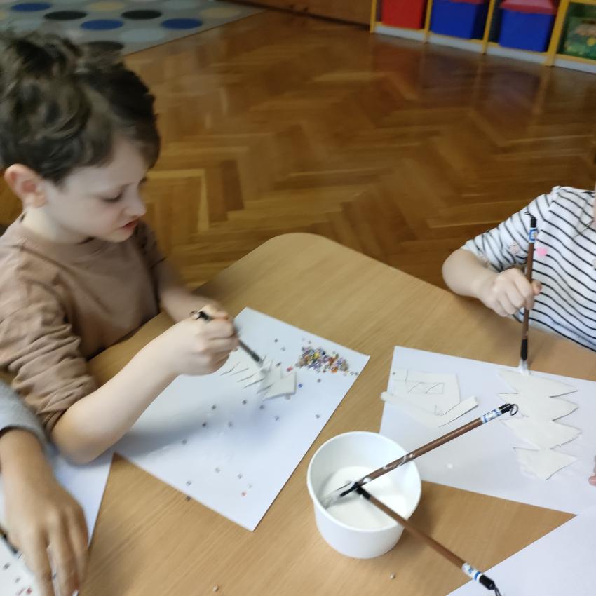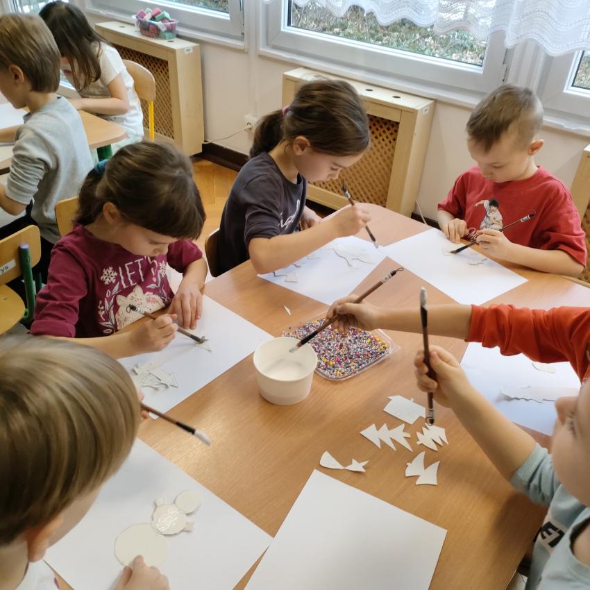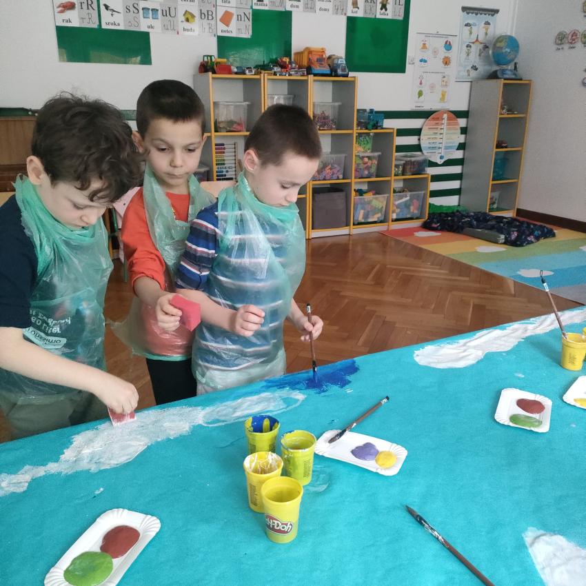 W minionym tygodniu dzieci z grupy „Smoki” eksperymentowały plastycznie, wykorzystując farby jako podstawę swoich działań twórczych. Podczas zajęć powstały piękne, zimowe obrazy wykonane z użyciem ciekawych i bardzo kreatywnych technik plastycznych. Mali artyści z ogromnym zaangażowaniem odkrywali nowe sposoby malowania, rozwijając wyobraźnię, sprawność manualną oraz wrażliwość estetyczną. Efekty ich pracy zachwycają pomysłowością i kolorystyką .