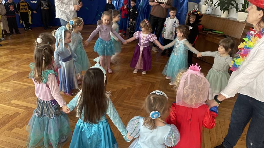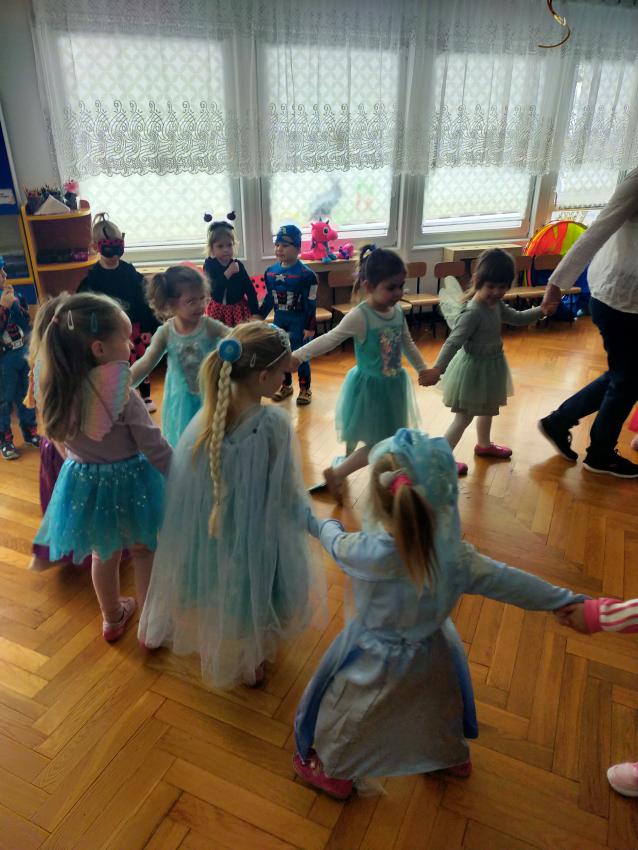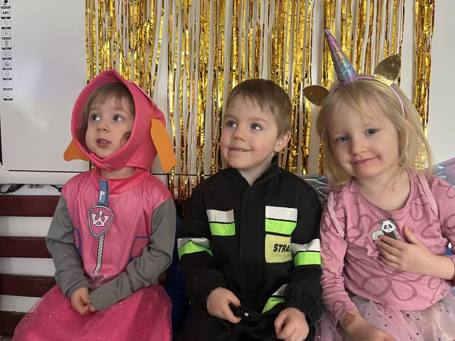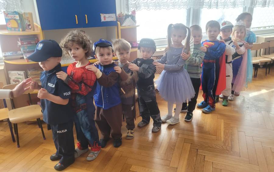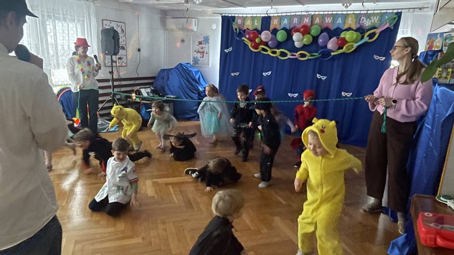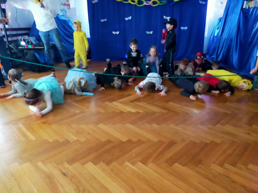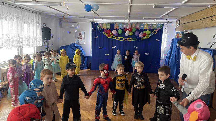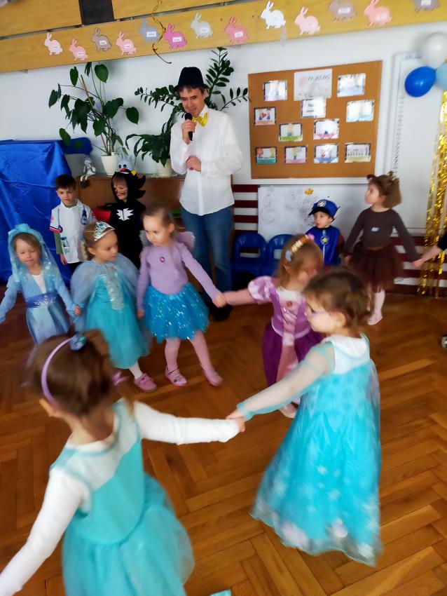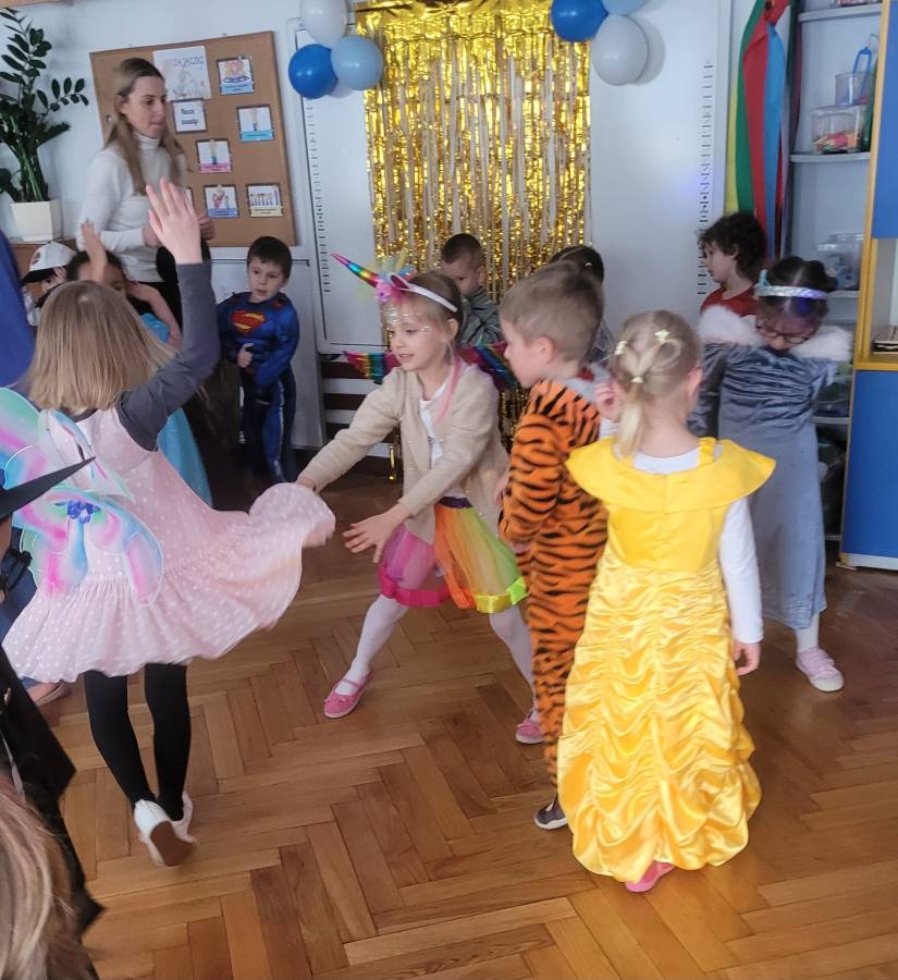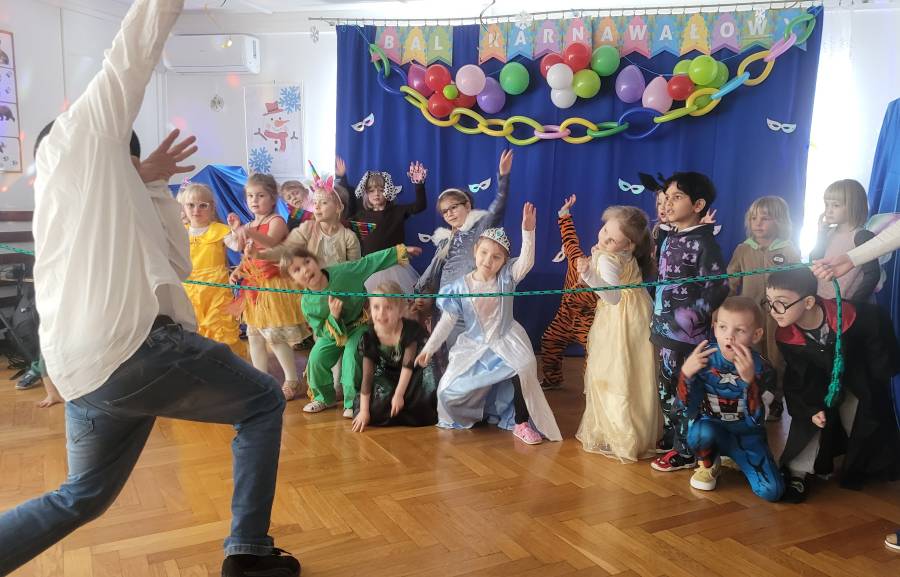 16 lutego w naszym Przedszkolu odbył się długo wyczekiwany Bal Karnawałowy. Tego dnia już od samego rana w salach panowała radosna atmosfera, a dzieci z dumą prezentowały swoje kolorowe i pomysłowe stroje. Wśród uczestników można było spotkać księżniczki, superbohaterów, zwierzątka, wróżki, policjantów, strażaków, a nawet postacie z ulubionych bajek. Sala balowa została pięknie udekorowana balonami, serpentynami i błyszczącymi ozdobami. Muzyka zachęcała do tańca, a dzieci z ogromnym entuzjazmem brały udział w przygotowanych zabawach. Dużo śmiechu przyniosło przechodzenie pod liną oraz pokonywanie kolorowego tunelu. Bal Karnawałowy był pełen radości, tańca i niezapomnianych wrażeń. To był wspaniały dzień, który na długo pozostanie w pamięci naszych przedszkolaków.