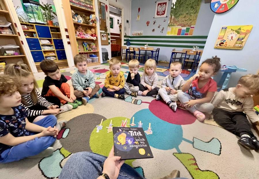 Na początku zajęć dzieci czytały książkę pt. „Titek i sposób na zasypianie”. Książka opowiada o sympatycznym bohaterze imieniem Titek, który przygotowywał się do snu. Następnie po przeczytaniu książki, dzieci uczestniczyły w rozmowie na temat własnych wieczornych rytuałów. Dzieci opowiadały o tym, jak wygląda ich wieczór i co robią przed pójściem spać. Kolejnym punktem programu był teatrzyk cieni, który wzbudził wiele pozytywnych emocji i zainteresowania wśród dzieci. Grupa "Skrzaty" wraz z nauczycielem przedstawiła historię Titka, który szykuje się do snu za pomocą przygotowanych kukiełek, co umożliwiło dzieciom zobaczenie, jak w ciekawy sposób można opowiadać historie i bawić się w teatrzyk cieni. Przeprowadzone zajęcia nie tylko dostarczyły dzieciom wiedzy na temat zdrowych nawyków przed snem, ale również rozwineły ich kreatywność i umiejętność wyrażania siebie.