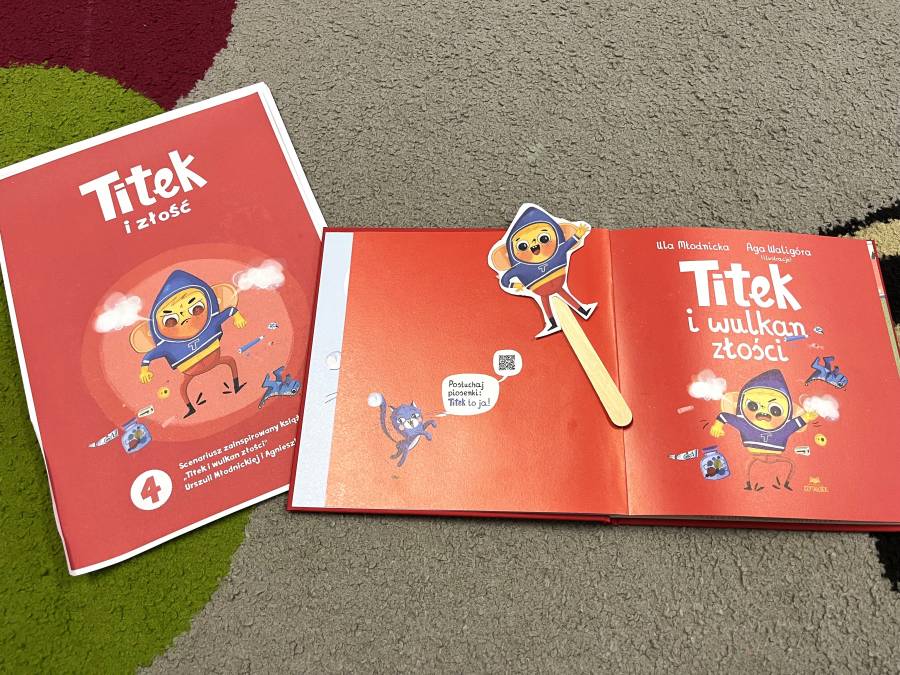 Dzieci z grupy "Skrzaty" w ostatnim czasie zrealizowały już 3 zadanie z projektu edukacyjnego "Titek poznaje świat". Tym razem dzieci zostały wprowadzone w historię Titka przedstawioną w książce „Titek i wulkan złości”: